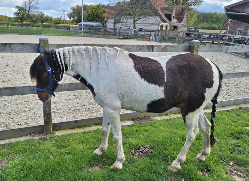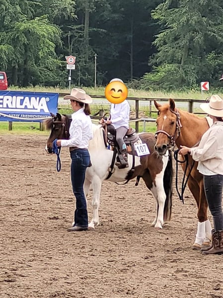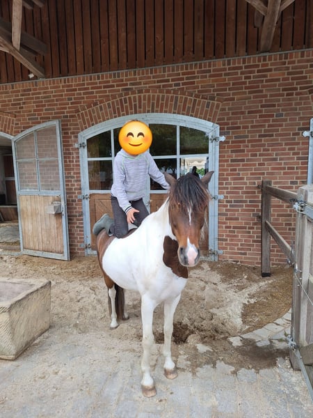 Wenn alles passt, suchen wir für unseren Smarti ein neues 5 Sterne Zuhause. Wir verkaufen ihn, da er für unseren Sohn bereits zu klein ist und das Interesse unserer Tochter leider nicht so da ist. Zum nur rumstehen ist er wirklich zu schade! Smarti ist 8 Jahre alt und 1,27 m groß und seit dem er 2 Jahre alt ist in unserem Besitz. Er wurde von unserer Tochter an der Longe geritten und konnte mit ihr bereits Erfahrungen und Platzierungen auf Westernturnieren in der Führzügelklasse sammeln. Von Kindern die schon etwas "stärker" reiten können, kann er auch frei geritten werden, hier müsste er noch weiter gefördert werden, da er bei uns nur viel an der Longe gewesen ist. Er kennt Hunde sowie auch Trecker. Wir könnten uns Smarti auch gut als Kutschpony vorstellen. Im Gelände wurde er bisher nur geführt, er ist dort aber sehr brav und unerschrocken! Ansonsten ist er ein lustiger Kerl, der jeden Spaß mitmacht aber auch gerne mal den Ponydickkopf durchsetzt. Er ist super schlau und könnte mit Sicherheit noch einiges an Bodenarbeit und Zirkuslektionen erlernen. Er steht bei uns in einem Offenstall in einer kleinen gemischten Herde mit stundenweisem Weidegang und war bisher nie krank. Wir wünschen uns für Smarti ein Zuhause am liebsten auf Lebenszeit mit Offenstallhaltung, Pferdeverstand und wo er noch weiter gefördert wird. Smarti wohnt in NRW PLZ 487..* Er kann und darf auch gerne weiterhin bei uns in Pension stehen, falls jemand aus der Nähe kommt. Bei ernsthaftem Interesse können noch mehr Bilder und Videos geschickt werden. Er wird nicht an Händler und Schulbetriebe verkauft. Preis 2.800 € VHB (inkl. 2 Sättel und 2 Kopfstücke/Trense), Platz vor Preis aber verschenkt wird er auch nicht.