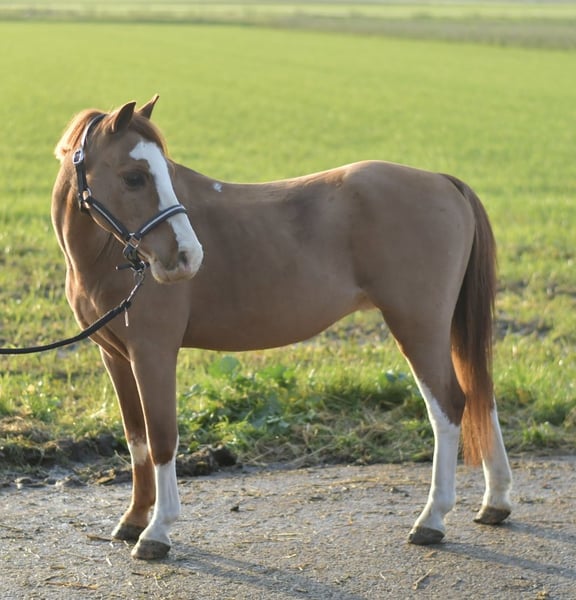 **Welsh A Pony Hope** Entdecken Sie unser charmantes Welsh A Pony Hope, einen liebevollen Wallach, der mit seinen 1,15 m Größe und einer einzigartigen Zeichnung am Bein alle Kinderherzen im Sturm erobert! Hope ist ein wahres Schmuckstück und bringt nicht nur Freude, sondern auch viel Erfahrung mit. Er stammt aus einer Reitschule und hat bereits auf zahlreichen Turnieren in Reiterwettbewerben und Führzügelklassen sein Können unter Beweis gestellt. Mit seinem freundlichen und liebevollen Wesen ist Hope im Umgang absolut unkompliziert und begeistert besonders die kleinen Reiter. Hope wurde 2017 geboren und ist ein cooler Typ, der darauf wartet, ein kleines Kinderherz glücklich zu machen. Ob als treuer Freund für Ihr Kind oder als zuverlässiges Pony für eine Reitschule – Hope ist die perfekte Wahl! Wir laden Sie herzlich ein, Hope persönlich kennenzulernen! Das Probereiten kostet bei uns 30 €. Kommen Sie vorbei und lassen Sie sich von seinem Charme begeistern!