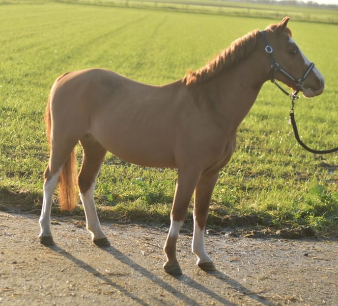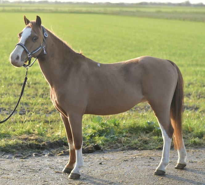 **Welsh A Pony Hope** Discover our charming Welsh A Pony Hope, a loving gelding standing at 1.15 meters with a unique leg marking that captures the hearts of all children! Hope is a true gem, bringing not only joy but also a wealth of experience. He comes from a riding school and has already proven his talent at numerous competitions, including rider trials and lead-rein classes. With his friendly and affectionate nature, Hope is very easy to handle and especially delights young riders. Born in 2017, Hope is a cool and confident pony, ready to make a young child's heart happy. Whether as a loyal friend for your child or as a reliable pony for a riding school – Hope is the perfect choice! We warmly invite you to meet Hope in person! Trial riding costs €30 with us. Come by and be charmed by his delightful personality!