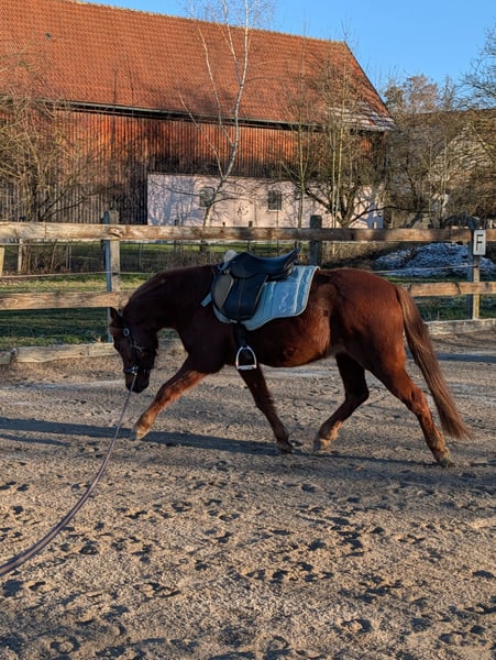 Brav im Umgang Beim reiten benötigt er noch Unterstützung von unten mit Kindern
