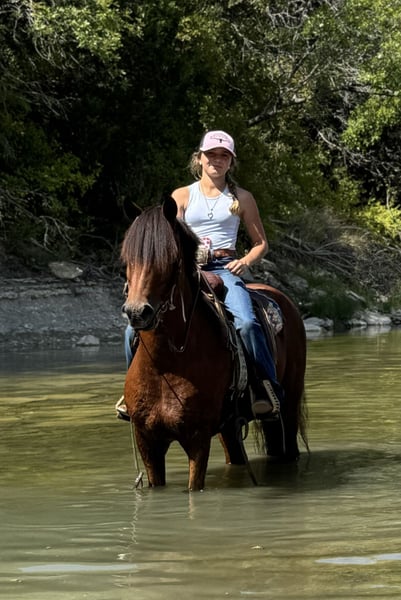 ♦️ 𝐭𝐡𝐞 𝐀𝐌𝐄𝐑𝐈𝐂𝐀𝐍 𝓕𝓪𝓵𝓵 𝓒𝓵𝓪𝓼𝓼𝓲𝓬 ♦️ Happening now thru MONDAY | OCTOBER 20th - Available EXCLUSIVELY on HorseBid's website! For more details and to register visit: www.Horsebid.com CONSIGNOR CONTACT: Ponies & Ponytails 727-741-0559 LOCATION: Cleburne, TX BREED: Welsh x Warmblood REGISTERED: No COLOR: Bay HEIGHT: 13.2 AGE: 8 GENDER: Gelding If you want the fanciest true all around pony.. this is your guy!! Teddy is a 8yr old 13.2h bay welsh x warmblood cross gelding. ENGLISH EXPERIENCE: This guy is a tried and true all arounder!! He’s been successfully shown in the hunters, jumpers, equitation and cross country!! You point and he tucks those little legs as cute as can be and gives you the best little jump he’s got every time!! No silliness!! No prep required!! This pony loves his job!! Teddy is also very competitive on the flat!! He’s got phenomenal movement!! Just watch his videos!! The flattest little trot and that canter is amazing!! So incredibly smooth he makes the equitation classes a walk in the park!! He catches his leads every time and he’s close to being finished on his lead changes!! He’s got very easy transitions up and down. Listens well to voice and responds well to your seat and leg. This is the pony that will take the kiddos to the next level. He’s quiet and easy enough to show in the cross rails yet talented enough to be competitive in the 2’3-2’6”. He’s been successfully shown already in the 2’3” and schooled courses at home up to 2’9” with more room to move up! WESTERN EXPERIENCE: If English isn’t your thing.. Teddy is happy to do the western events! He will gladly go to the playdays and do the barrels and poles. He’s very easy to maneuver and very respectful of his riders cues. You can ask him for all the speed then turn him right off and he will drop his head and walk quietly. He will go trail riding all day long and go anywhere you point him! Teddy will ride in the front, back or middle. Doesn’t mind wildlife, traffic, dogs or goats. He will go up steep hills like a mountain goat and he lovesss to play in the water!! He’s got a nice easy walk, jog, lope and a nice easy little neck rein! DISPOSITION: Teddy should suit just about any program! From the lesson barns to the show barns. He’s got a wonderful disposition and the coolest in your pocket personality!! Teddy is the kind of pony you don’t find everyday. From his training and experience to his bubbly barn favorite personality. He meets you at the gate every time and smiles for cookies! UPKEEP: Teddy is a very easy keeper. He eats alfalfa hay and a 1/2 scoop of a basic pelleted grain twice a day. UTD on all. Currently in a basic front shoe for jumping support. He has been and can easily go barefoot. LOADING: Teddy loads and unloads very easily. He hauls great and stands quietly tied to the trailer. TURNOUT: Teddy can go out alone or in a group setting. He’s been out with mares and geldings without drama. GROUND MANNERS: Teddy is very quiet on the ground. He stands well for washing, grooming, farrier, saddling and he’s easy to bridle. You can single tie or cross tie Teddy. He’s quiet with dogs and goats running around him as well. BAD HABITS/VICES: Teddy has NO bad habits or vices. No buck, rear, bolt, bite or kick. TACK: Teddy rides in anything from a halter and lead rope to a smooth snaffle to a slow twist snaffle. Super easy. Not fussy.