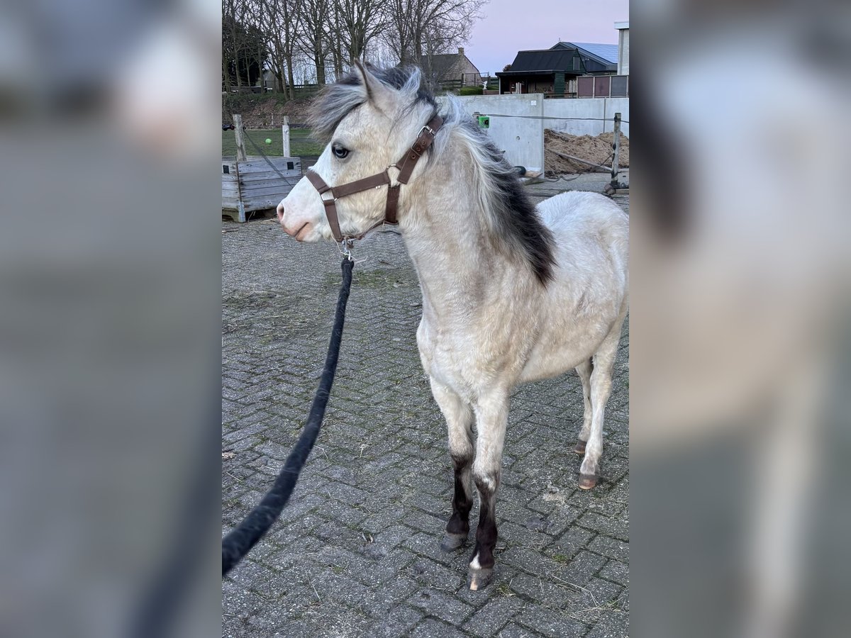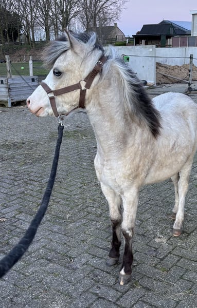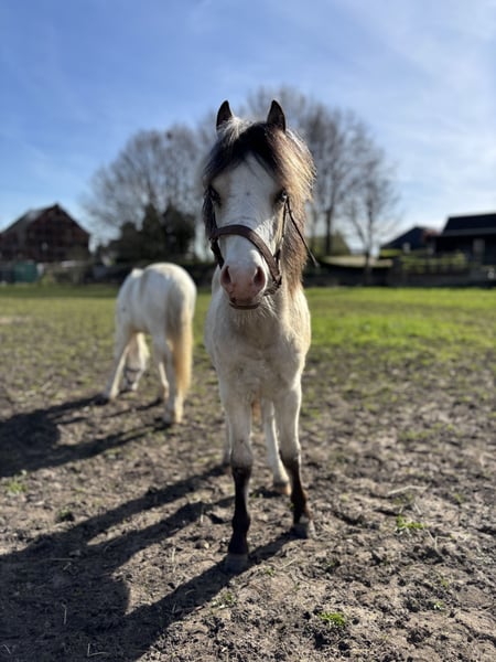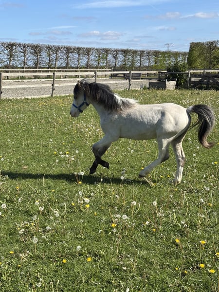 Prachtig jaarling Welsh A hengstje. Verwachtte eindmaat 1.18. Hele lichte valk kleur met twee halve maanoogjes. Prachtige verschijning. Leuk hengstje om mee te nemen naar de keuring!