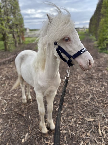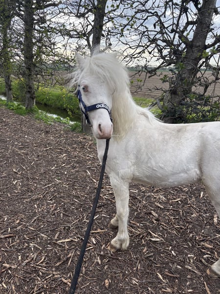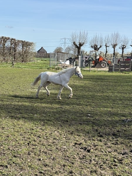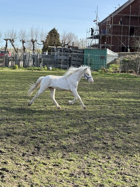 Prachtig Welsh A hengstje v.Cosfords Tic Toc Mvg Paaskamps Princenhage 1-4-2025 Cremello met nu al een enorme bos manen en mooi front.