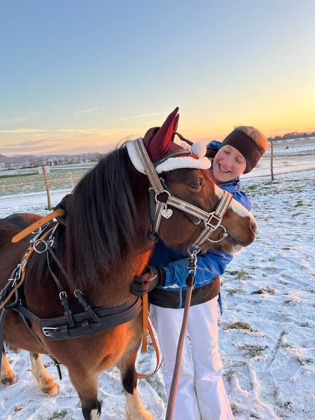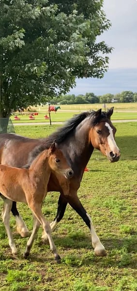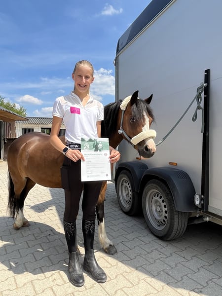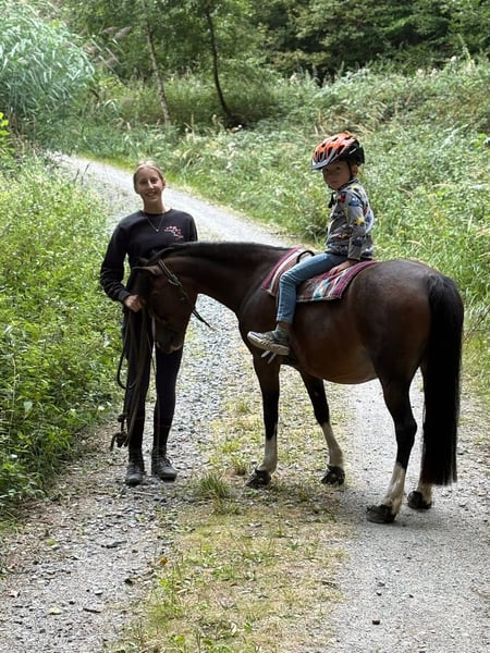 Unsere liebevolle und vielseitige Welsh A Pony Stute Mary Lu sucht eine neue Familie, die sie genauso glücklich machen kann wie uns all die Jahre. Sie überzeugt mit ihrem charmanten Wesen und ihrer stetigen Leistungsbereitschaft. Meine Tochter hat auf ihr reiten gelernt und sie auf Turnieren sicher durch die Prüfungen getragen. Bei Dressurreiterwettbewerben waren sie mehrmals platziert. Auch im Gelände immer verlässlich! Ich habe meine Töchter bedenkenlos alleine ausreiten lassen. Als die Beine unserer Tochter zu lang wurden, haben wir sie bei Theo Habich in die Kutsche einfahren lassen. Leider wurde die Zeit nach dem Schulabschluss unsere Tochter immer knapper und Mary Lu wurde für 1 Jahr als Zuchtstute eingesetzt. Sie brachte uns 2024 völlig problemlos ein prämiertes wunderschönes, gesundes Hengstfohlen zur Welt. Seit dem Absetzen des Fohlens im Herbst 2024 ist sie wieder voll im Training Wir hatten zwischendurch verschiedene kleine Reiter, aber hauptsächlich als Handpferd im Gelände, Führmaschine, Longe oder Freispringen und Freiarbeitstraining sind aktuell ihre Aufgaben Zirkuslektionen wie Zirkeln beherrscht sie bereits sehr gut. Im Reiten befindet sie sich auf einem sicheren A Niveau. Sie beherrscht Seitengänge und Rückwärtsrichten problemlos Sie ist fein in der Anlehnung und möchte immer gefallen. Man kann sie auch ausgebunden reiten oder longieren. Mary Lu ist motiviert, aufmerksam und arbeitet immer fleißig mit. Sie möchte gefordert werden und gibt ihrem Menschen dann jederzeit ihr Bestes. Ein Pony mit Herz und Verstand, das sich eine passende Familie wünscht, die ihre Fähigkeiten zu schätzen weiß und weiter fördert. Probereiten jederzeit möglich