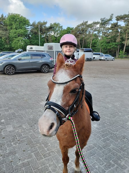 Hierbij bieden wij onze super brave, lieve en mooie Lilly te koop aan. Lilly is super braaf in zowel de omgang als met rijden. Ze kijkt nergens naar en vindt alles prima. Onze dochter ziet het helaas niet zitten om fanatiek te rijden en aan de gang te gaan met Lilly. Lilly verdient nog een mooi plekje waar ze een ander(e) kindje(s) nog blij kan maken en kan leren rijden. Ongeacht haar leeftijd van 22 jaar is Lilly nog super fit en zit er nog genoeg pit in. Ze is 1.16 m en daarmee een grote A-pony. Ze heeft in het verleden 70 cm gesprongen en wij hebben met haar Bixie wedstrijdjes gelopen. Lilly vindt het ook super leuk om naar het bos te gaan en ze is dan ook een echte allrounder, dressuur, springen, recreatief, het kan allemaal. Lilly is netjes bijgehouden met inentingen, tandarts en hoefsmid. Ze wordt met alle toebehoren verkocht. Zijn jullie op zoek naar een super brave pony met een gouden hart?? Zoek dan niet langer en neem contact met ons op om kennis te maken met onze Lilly!