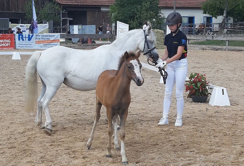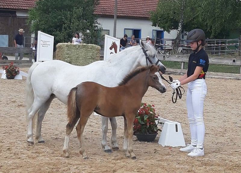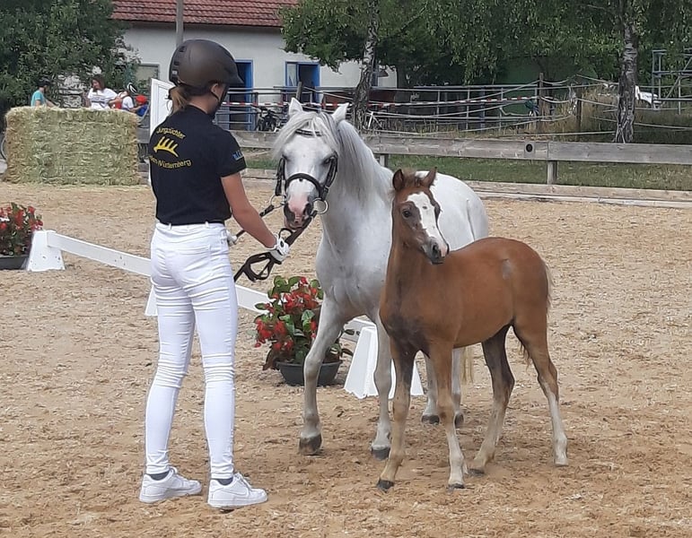 Camilla ist eine ganz liebe und anhängliche junge Stute mit sehr guten Bewegungen. Ihre Mutter ist die Staatsprämienstute Merywens Mira, Vater der süddeutsch prämierte Leistungshengst Salvadors Camillo. Auf der Fohlenschau in Schwäbisch Hall wurde sie mit Gold prämiert.