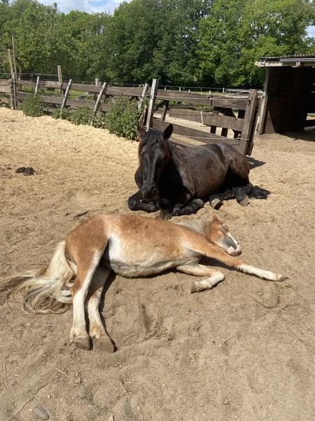 C'est à contrecoeur que je dois me séparer de ma petite Wilma. Wilma vient d'une association de protection animale et est née dans des conditions très difficiles. Heureusement, elle n'a rien conservé de cette passé et est une petite ponette amicale, extrêmement intelligente et, à son âge, espiègle. Une ponette au caractère affirmé, avec de magnifiques grands yeux et une joie de travailler. Wilma aime les enfants et est généralement très adaptable. Je voulais faire du sulky avec elle et l'éduquer pour qu'elle devienne une ponette pour enfants, mais je n'ai pas avancé beaucoup dans ce projet. Elle connaît le maréchal-ferrant, le vétérinaire, les promenades, le round pen et les bases du travail à la longe. Malheureusement, elle n'est pas facile à charger. C'est possible, mais cela demande toujours beaucoup d'efforts. De plus, Wilma présente un souffle audible à droite, mais cela ne la dérange pas. Wilma sera proposée avec un contrat de protection animale et contre une participation aux frais. Ici, la qualité prime sur le prix. Pour toute question ou intérêt, n'hésitez pas à me contacter ! Wilma a hâte de faire votre connaissance :)