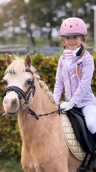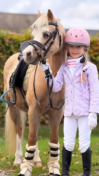 Deze pony is echt een schat — mega braaf en kindvriendelijk, ideaal voor de kleinste ruitertjes of als eerste pony. Ze gaat keurig mee aan het touwtje op BIXIE-wedstrijden en vindt alles leuk zolang ze aandacht krijgt.