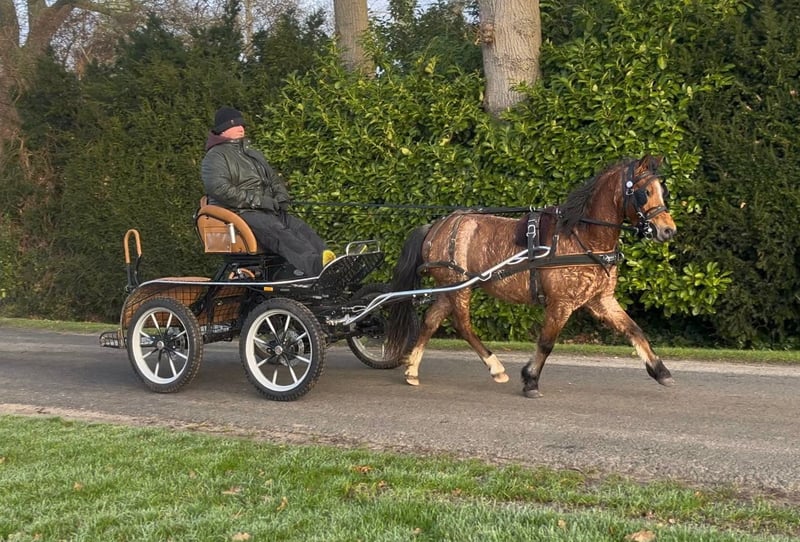 Welsh A Pony Mare, nearly 5 years old (born 2021), approximately 120 cm in height. Driveable in single and double harness, traffic-safe – very well-behaved even with larger vehicles. Already introduced to riding at smaller events, always trouble-free. A sporty pony with a fine, friendly temperament. Knows children; has not been ridden so far, but with proper training, would be very suitable as a children's pony. Holds a horse passport with pedigree documentation. The listed price does not include accessories. Reservations only with a deposit. Subject to errors and prior sale. We regularly have other driving and children's ponies available. For inquiries or questions, please contact us by phone: 0174 8456302 Kamphuis Sporthorses GbR Uelsener Str. 56 49843 Halle