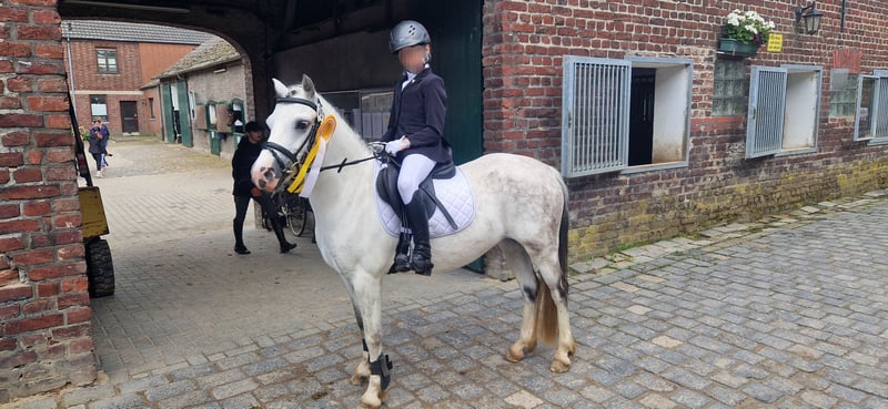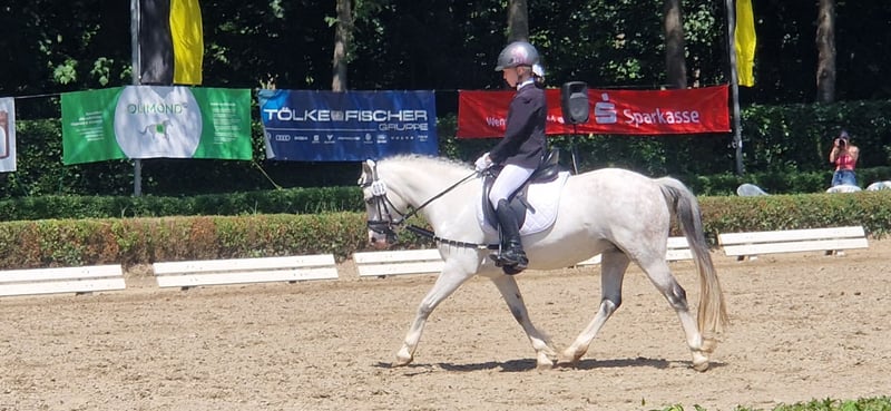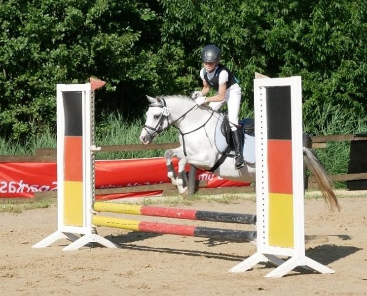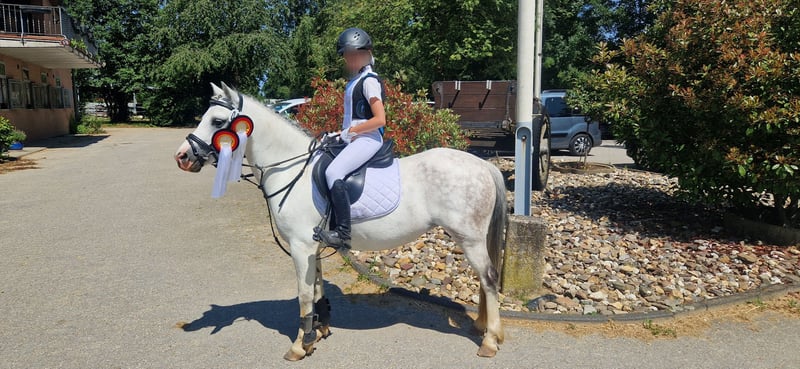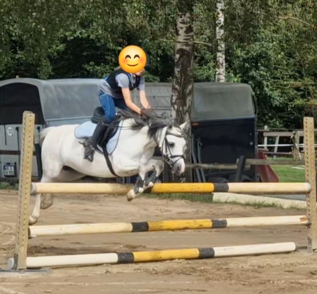 Sehr schweren Herzens suchen wir für unsere süße, schicke Maya ein neues Zuhause, in dem sie genauso geliebt wird wie bei uns. Maya ist eine reinrassiges Welsh Mountain Pony mit einem Stockmaß von 122cm. Sie hatte bereits ein Fohlen und wäre auch für die Zucht interessant. Bei uns ist sie ein heißgeliebtes Reitpony, dass inzwischen auf einem guten E Niveau sowohl in der Dressur, als auch im Springen ausgebildet ist. Sie kann auch Seitwärtsgänge, fliegende Galoppwechsel und noch vieles mehr. Sie ist ein sehr gescheites Pony und immer lernbereit. Einen Handarbeitskurs hat sie mit Bravour gemeistert. Typisch Welsh ist sie Fremden gegenüber immer etwas reserviert, überwindet dies aber nach relativ kurzer Zeit. Im Training springt sie bis 85 cm, das haben wir auf dem Turnier aber noch nicht getestet. In der Dressur lässt Maya sich sehr fein reiten und kennt die korrekte Hilfengebung über Sitz und Schenkel und geht dann sehr schön am Zügel. Sie geht auch problemlos ausgebunden. Meine Nichte lernt gerade an der Longe auf ihr reiten. Dabei ist sie sehr brav. Es wäre dennoch schön, wenn sie auch in Zukunft nicht nur von Anfängern geritten würde. Maya kann auch ohne Sattel, mit Pad, mit Knotenhalfter und ohne Zügel nur über Sitz und Schenkel geritten werden. Auch einen Schulterstand kann man auf ihr machen, ebenso auf ihrem Rücken stehen oder Hinten runter rutschen. Sie bleibt wie eine 1 stehen und macht überhaupt nichts. Im Wald ist Maya absolut entspannt, kann am langen Zügel geritten werden und geht auch an Rehen und Wildschweinen, ohne mit der Wimper zu zucken, vorbei. Sie macht auch gerne geführte Spaziergänge und ist hierbei auch von kleinen Kindern absolut gut zu händeln. Sie ist ein absolut braves und ehrliches Pony, dass aber auch mal ihren Kopf durchsetzen möchte. In der sich zum Ende neigenden Turniersaison ist Maya nie ohne Schleife von einer WBO Prüfung nach Hause gekommen. Sei es mit meiner Nichte im Führzügelwettbewerb, oder mit meiner Tochter in Reiterprüfungen, Dressurreiterprüfungen, Caprilli-Tests und Springreiterwettbewerben. Sie ist als Turnierpony eingetragen und ist entsprechend geimpft. Maya wird nie böse, steigt nicht, buckelt nicht, tritt nicht, beißt nicht. Sie testet aber ganz gerne mal ihren Reiter, indem sie versucht das Tempo und die Richtung anzugeben. Wir wünschen uns ein Kind, dass Lust hat ein Pony fein reiten zu lernen, oder auch gerne schon kann. Unterstützung sollte am Besten vorhanden sein. Da Maya etwas Zeit braucht sich auf ihren Reiter einzustellen, sehen wir sie nicht im Schulbetrieb und möchten sie auch nicht über einen Händler verkaufen, sondern ganz in Ruhe den passenden Menschen für sie finden. Dies ist kein Notverkauf und wir geben sie nur in allerbeste Hände.