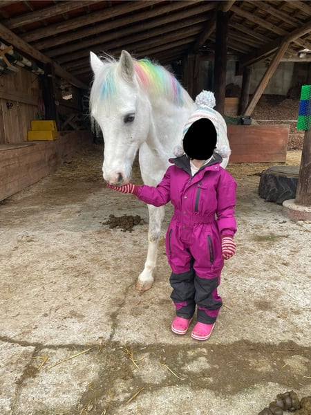Zum Verkauf steht ein 1,30m grosses Schimmelpony, Wallach, FN-eingetragen und voll geimpft (Influenza & Herpes). 13 Jahre alt. Vorne beschlagen, hinten barhuf, gesund und regelmäßig gearbeitet. Er geht solides E-Niveau, hat Turniererfahrung und wurde beim Vorbesitzer bereits von einem 9-jährigen Kind geritten. Er ist kein reines Anfängerpony – in Verbindung mit einem Erwachsenen aber ein tolles Kinderpony. Er ist sehr ehrlich und leistungsbereit. Auch für kleinere Erwachsene sehr gut geeignet. Ich selbst bin 1,62m. Er ist brav in der Halle, auf dem Platz und im Gelände. Alleine im Gelände ist er manchmal unsicher, hier fehlt ihm noch Routine. Dann braucht er einen ruhigen, sicheren Reiter, der ihm Führung gibt. Im Umgang absolut brav, sehr menschenbezogen und sozial. Steht aktuell mit einem Wallach zusammen, rangniedrig und unkompliziert, er ist aber auch gut verträglich mit Stuten. Er kennt Box mit Paddock ebenso wie Offenstall, 24/7 Heu mit Netz und regelmäßigen Weidegang. Macht Bodenarbeit gerne, ist schlau und lernt schnell – abwechslungsreiche Arbeit liegt ihm definitiv. Ich könnte mir gut vorstellen, dass er an Zirkustricks große Freude hat. Brav beim Schmied, Hänger fahren kennt er auch. Kein Notverkauf. AKU ohne Befund vom September ‘25 liegt vor. Trense, diverse Stallhalfter und einige Decken sowie Schabracken sind inklusive. Um Reittourismus zu vermeiden, verlange ich 30€ fürs Probereiten, die bei einem Kauf verrechnet werden. Weitere Infos und Videos auf Anfrage.