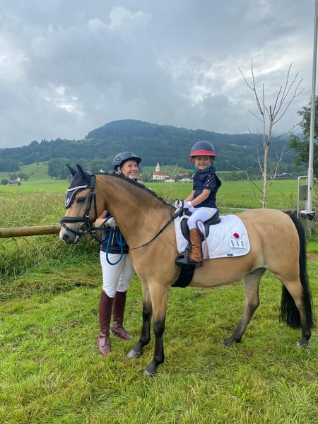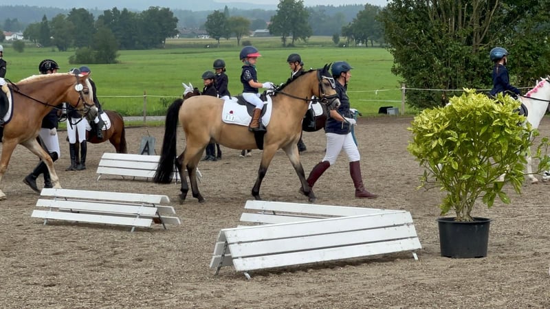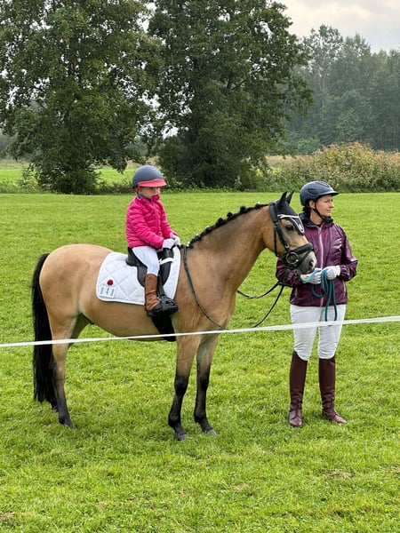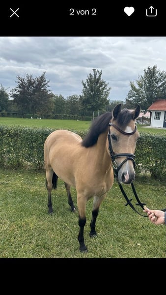 Zum Verkauf steht ein 15jähriger charmanter Welsh-B Wallach, geboren im Jahr 2011. Mit seinem freundlichen und sehr aufgeschlossenem Wesen und seiner Bewegungsfreude ist er ein idealer Partner für ambitionierte und mutige Nachwuchsreiter, die Spaß an einem temperamentvollem Pony haben. Renzo (genannt Pepino) überzeugt durch seine seine liebe Art im Umgang und Neugierde. Wenn man ihn ruft kommt er immer angetrabt. Er ist mutig und selbstbewusst und weiß sich zu präsentieren. Derzeit wird er von einer 13jährigen Reiterin in der Dressur und in Stangen- und Springstunden gearbeitet und auf seinen ersten Parcoure vorbereitet. Regelmäßig nimmt er beim Freispringen teil und zeigt hier große Freude und Potenzial (max. 110 cm). Ab und zu zeigt er die Tendenz zum "überspringen". Bei angemessenem Tempo ist das beim Springen unter dem Sattel aber gut zu sitzen. Beim Spazierengehen im Gelände ist er sehr brav und anständig. Er zeigt sich hier mutig und unerschrocken. Wir könnten ihn uns auch gut als Fahrpony vorstellen. Das wurde aber bisher nicht von uns ausprobiert. Pepino ist topfit, robust und war bisher immer gesund. Keine Krankheiten, oder gesundheitliche Einschränkungen sind bekannt. Die Zähne wurden regelmäßig kontrolliert und er ist turnierregelkonform geimpft. Bei uns steht er in einer Box mit täglich Paddock und im Sommer stundenweise auf der Koppel gemeinsam mit unserem Wallach. Hier ist er verspielt und braucht einen Partner, der damit umgehen kann. Aufgrund seiner Bewegungsfreudigkeit können wir uns auch gut einen Offenstall mit passenden Partnern vorstellen. Er trägt vorne Eisen. Warum geben wir einen so tollen Kerl ab? Wir haben ihn vor 2 Jahren für unsere jetzt 6jährige Tochter als "Kinderpony" gekauft und mussten aber leider feststellen, dass er für ein so junges und unerfahrenes Reiterlein zu viel Temperament und Go hat. Das Reiten an der Longe klappt sehr gut aber zum freien Reiten reicht es noch lange nicht. Unsere Empfehlung wäre ein mutiger und ambitionierter jugendliche Reiter, der bereits gut im Sattel sitzt und auch weiß, wie man sich durchsetzt. Ab und zu fragt Pepino beim Reiten seine Grenzen ab - nach Klarstellung läuft er aber wie am "Schnürrchen". Dennoch haben wir in den letzten beiden Jahren die Zeit mit vielen wunderschönen Momenten und auch Erfolgen mit Pepino erleben dürfen. Er wurde von unserer damals 4-5jährigen Tochter in der Ponyführzügelklasse regelmäßig auf Turnieren vorgestellt, wie z.B.: *1. Platz bei den YoungTalents in München Riem 2024 *3. Platz beim Nürnburger Burg Pokal im Rahmen der Pferd International in München sowie vielen weiteren vorderen Plätzen. Achtung: Auch hier zeigt er sein Temperament ist aber immer händelbar. Aufgrund seiner sportlichen und eher zierlichen Statur empfehlen wir ein maximales Reitergewicht von 55 kg und eine Größe von maximal 165 cm. Bei Interesse oder für weitere Informationen stehe ich gerne zur Verfügung. Ein persönliches Kennenlernen ist jederzeit möglich.