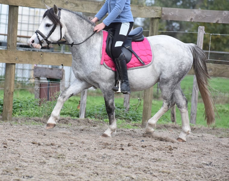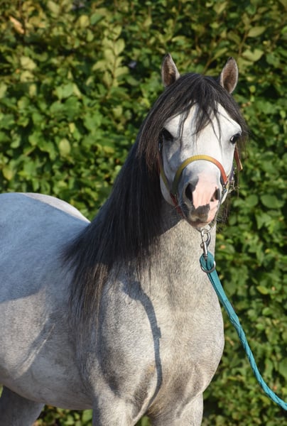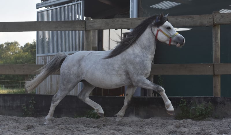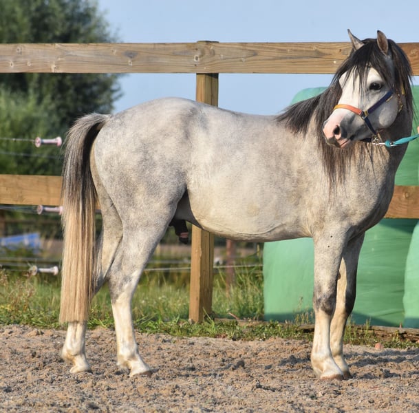 Cuppers Winston ist der Name dieses fast vierjährigen Hengsts! Sein Rufname ist Blue Boy. Er trägt eine wunderschöne, blaue Apfelschimmel-Farbe. Er besitzt eine fantastische, beeindruckende Abstammung: Hier klicken für seine Papiere: Eindegooi’s Pretty Charmer x #Oldenzijlster Action Man x #Vechtzicht’s Cymro Bach. Er hat eine prächtige, vollgebaute und dennoch elegante Konstitution. Ein Kopf, der direkt aus einem Disney-Film stammen könnte. Und sein Gangwerk ist spektakulär! Mit Blue Boy wurde bereits viel Bodenarbeit gemacht, und er ist sowohl hier als auch zuvor stets superbrav im Umgang, in der Trailer, auf dem Paddock und in der Weide. Winston ist momentan ein Wallach, aber als Hengst war er bereits äußerst brav. Er wächst nun in die Höhe und ist eine große B-Maße. Er ist ein unglaublich kooperativer, superlieber Wallach. Er findet das Reiten sehr angenehm und möchte gerne weiter wachsen: Für die Freizeitreiterei ist er hier bereits brav genug, aber auch als Sportpony ist er bestens geeignet. Wir erwarten, dass er sehr leicht zu erlernen ist, zum Kutschieren – das wird bestimmt ein wunderschönes Bild! Er liebt das Reiten sehr und ist von Anfang an brav mit dabei gewesen; wir konnten sofort ohne Probleme auf ihn aufsteigen. Preis: 4.750 € inklusive Marken-Sattel und Abschwitzdecke