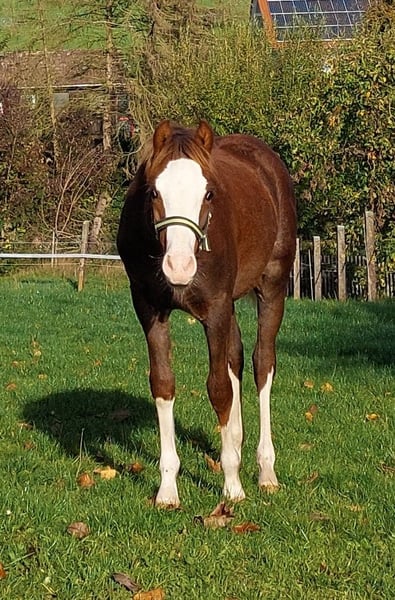 Hongre de 3 ans avec une excellente lignée et de bons mouvements. Père étalon primé, mère jument lauréate du championnat Welsh. 1er prix lors de l'exposition de poulains du Ponyverband Hannover. Bien éduqué, habitué à l'attelage, ferré et chargé sans problème, vacciné et régulièrement vermifugé. À céder pour des raisons d'âge. Un poney pour l'avenir, adapté pour l'équitation, l'attelage et les loisirs.