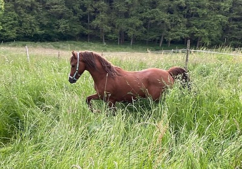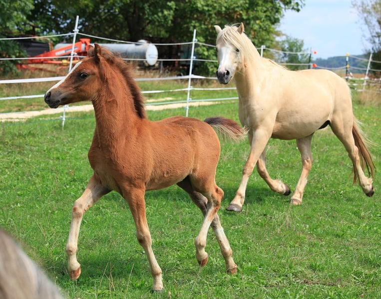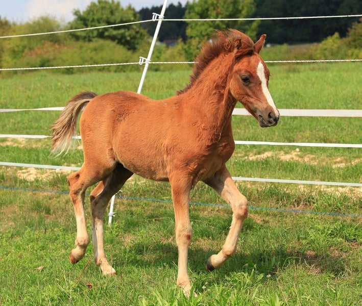 Henry has everything he needs to become a good driving pony. His dam is a state premium and performance mare, she won her performance test in driving with a score of 8.25. With the right training, he is sure to be a great pony for children. He is currently being bred near Erbach in the Odenwald.