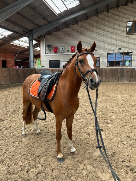 Wir suchen für unseren vierjährigen selbst gezogenen Welsh-B Pony Wallach Havanero ein liebevolles Zuhause. Er wurde vor Kurzem schonend angeritten und zeigt sich dabei von Beginn an sehr brav, rittig und lernwillig. Mit seinem hübschen Erscheinungsbild und seiner freundlichen Art ist er ein echtes Kinderpony mit Zukunft. Er ist lieb im Umgang, lässt sich problemlos putzen, führen sowie verladen. Ob Reiten oder Spaziergänge: Havanero ist für jeden Spaß zu haben und zeigt sich dabei stets motiviert sowie neugierig und bleibt dabei unerschrocken. Mit einem Stockmaß von 1,35 m passt er ideal zu Kindern und ist ein toller Freund zum Lieb haben. Er hat bereits die ersten Sprünge unter dem Reiter absolviert und geht auch bereits fliegende Wechsel. Wir wünschen uns für ihn ein liebevolles Zuhause, in dem er ein Familienmitglied sein darf. Am liebsten mit Kindern, denn genau dafür ist er gemacht. Auch als Kutschpony wäre er denkbar. Standort: Friesoythe Bei Interesse freuen wir uns über eine Nachricht, E-Mail oder einen Anruf!