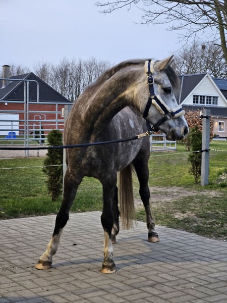 For sale is a very handsome 6-year-old Welsh B gelding with full papers and an approximate height of 13.9 hh. He impresses not only with his attractive appearance in the modern pony type but especially with his balanced, gentle character and excellent rideability. Our pony is age-appropriately trained, already confidently ridden under saddle, and has been ridden by our 11-year-old daughter for the past year. He consistently proves to be well-behaved, reliable, and easy to handle — both in daily management and under saddle. He has great jumping ability, is honest at the jump, and always wants to get to the other side. First competition experience is available (WBO, including Jump & Run). His canter is calm and well-regulated, though due to age and training, he can still further develop strength and stamina — he shows a willing attitude to learn and is constantly progressing. Outside of his home stable, he is very uncomplicated and relaxed: he is experienced in riding out and behaves impeccably away from home. In handling, he is a true reliable pony: ✔️ shoe- and loading-broke ✔️ well-behaved at the vet ✔️ straightforward in daily handling He is ideally suited as a children's pony for entry into competitive riding or as a dependable partner for further development. 📍 Age: 6 years 📍 Height: approx. 13.9 hh 📍 Breed: Welsh B (full papers) 📍 Training level: age-appropriate, confident under saddle A pony with lots of quality, heart, and potential — a true family pony with a sporting outlook. 🎥 Videos (riding & jumping) can be sent upon request. 🧰 Suitable equipment (including dressage and eventing saddle, as well as extensive accessories) can be purchased at an additional cost. Only to the best hands. To prevent riding tourism, we charge €20 for a trial ride, which can be deducted from the purchase price.