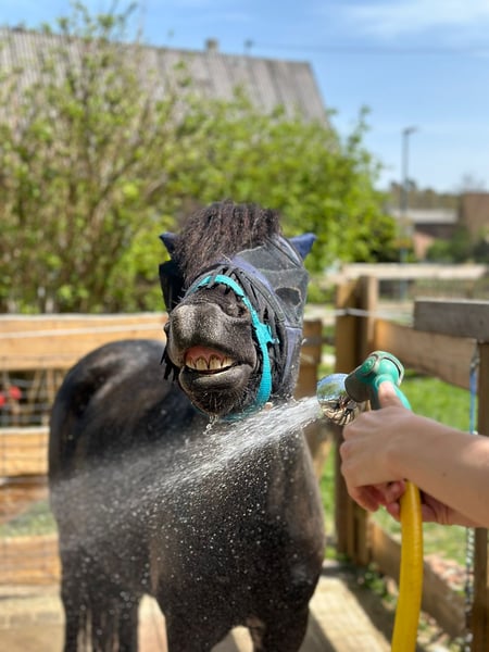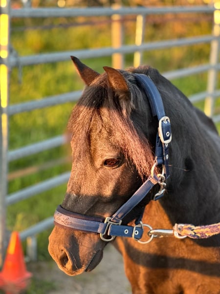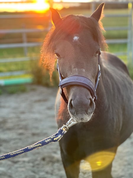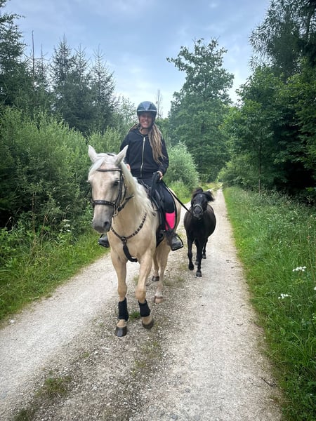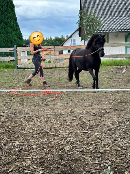 Unser Welsh-Mix Pony Rio (ca. 115 cm, 7 Jahre alt) sucht ein liebevolles Zuhause, in dem er die Aufmerksamkeit und Förderung bekommt, die seiner aufgeweckten Art entspricht. Er befindet sich aktuell in professioneller, klassischer Ausbildung und zeigt sich dort äußerst feinfühlig, aufmerksam und lernwillig. Er reagiert leicht an der Hand, sensibel am Gebiss und lässt sich zuverlässig regulieren. Rio wird derzeit an der Doppellonge gearbeitet, vom Boden gefahren und lernt, fein auf Körper- und Stimmhilfen zu reagieren. Zusätzlich wird er langsam an das Reitgewicht gewöhnt. Als Handpferd im Gelände läuft er brav und sicher mit. Spazieren geht er sowohl in der Gruppe als auch alleine super gerne und brav, sogar mit Kindern. Auf dem Platz zeigt er elegante, leichte Bewegungen und viel Ausdruck. An den Seitengängen wurde begonnen zu arbeiten, die er willig annimt. Seine natürlichen Anlagen lassen auf gutes Potenzial schließen. Durch seine Energie und Sensibilität eignet er sich ideal als zukünftiges Fahrpony, für die Freiheitsdressur, Shows oder eventuell auch für den Bereich Pferdecoaching. Rio wird bei uns im offenstall gehslten und ist in der Herde ranghoch. Er kennt sowohl Ponys als auch Großpferde. Er ist neugierig, voller Energie und manchmal ein kleiner Quatschkopf, der mit seinen charmanten Ideen viel Freude in den Alltag bringt. Vermutlich hat er in der Vergangenheit einmal weniger gute Erfahrungen mit Menschen gemacht, weshalb er anfangs etwas vorsichtig sein kann. Mit einer verlässlichen, geduldigen Bezugsperson baut er jedoch schnell Vertrauen auf und ist sehr verschmust und für jeden Quatsch zu haben. Gesundheitlich ist Rio bestens versorgt: Er ist regelmäßig geimpft und entwurmt, hat vor kurzem die Zähne gemacht bekommen und seine Hufe werden regelmäßig bearbeitet. Er geht Barhuf. Bei uns war er bisher noch nie krank. Rio ist ein Pony, mit dem sehr viel möglich ist, wenn man bereit ist, Zeit, Arbeit und Herzblut zu investieren. Er sucht jemanden, der seine feine, energetische und vielseitige Persönlichkeit zu schätzen weiß.