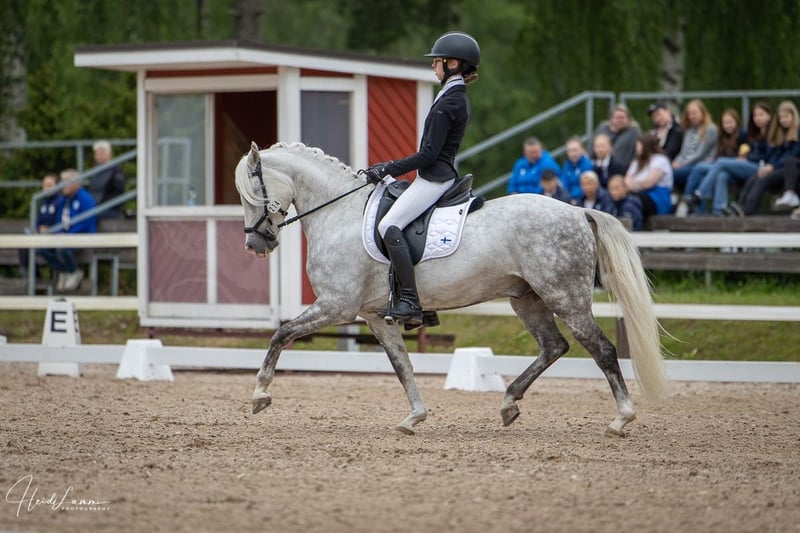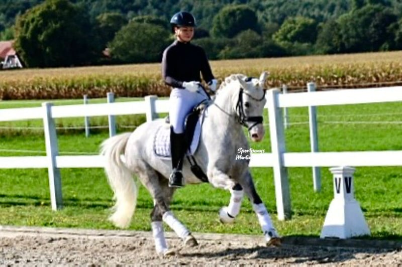 Valid FEI passport available sire: Goldencoast Eros x dam: Jedidjan Johannes With "North Finn Flame," aka Lasse, we have an absolute dream pony. "Lasse" combines a sporty heart with a love for play and fun. Additionally, he is simply stunning and incredibly sweet. In short, "Lasse" is a true heart pony! Even though "Lasse" is on the smaller side in terms of size, he easily accommodates larger riders. Under saddle, he appears very big, making it hard to distinguish him from some full-sized ponies. "Lasse" is very well trained, allowing even smaller children and inexperienced riders to benefit and learn quickly from him and his routine. He is absolutely reliable in lessons and easy to ride. With his previous rider, who has now outgrown the pony age, "Lasse" has achieved numerous victories and placements in FEI competitions. Among their greatest successes this year was winning the bronze medal at the Finnish Championships! Besides working in the arena, "Lasse" loves long trail rides; whether it's dark or light outside, or if there's a lot of snow, the gelding enjoys it and always looks out for his rider. Furthermore, "Lasse" shows great skill over jumps during occasional jumping sessions. Anyone looking for an absolute dream pony with a guarantee of ribbons should not miss out on "Lasse." A radiological certificate is available. https://youtu.be/yAQQA_8sunw?si=8eKhHA3LTBJnfM0N For serious inquiries, please feel free to contact us by phone at +491707941333.