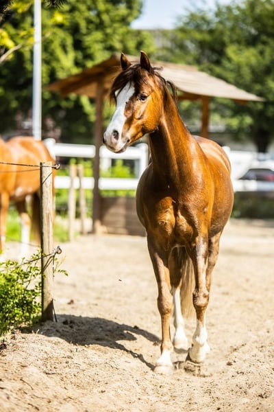 Our sweet Wynswood Elfie WNE is ready for his next rider. He's a super handsome chestnut and 126.5cm. We've had him since he was 3, and my youngest daughter (now 11) taught him everything herself. Elfie is M1 in dressage (almost the highest level for the Netherlands and this type of pony) and jumps 60cm in competitions and 70cm in training. A nice, consistent pace, always good style points! He has more potential but my daughter is getting to big. We participated in a mini-cross, and he jumped it effortlessly. He's also super well-behaved on forest rides. He's always confident in unfamiliar terrain and isn't afraid of anything or nervous. Our youngest daughter has done absolutely everything with him, from serious riding to standing on your pony, sliding off his bottom, dressing up, you name it. This makes him a true children's pony, but with all the qualities of a sports pony. Even small, inexperienced children love riding him! Elfie is sweet with other ponies and is now part of our small herd in our paddock paradise 24/7. On our Instagram @deponyzusjes you can find a highlight of Elfie with a whole bunch of videos from over the years.