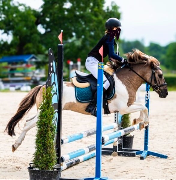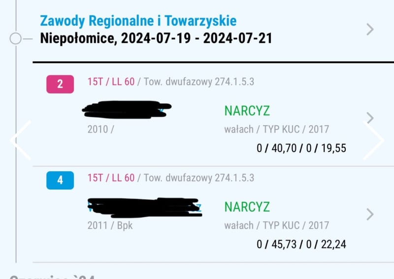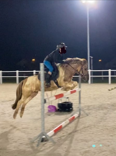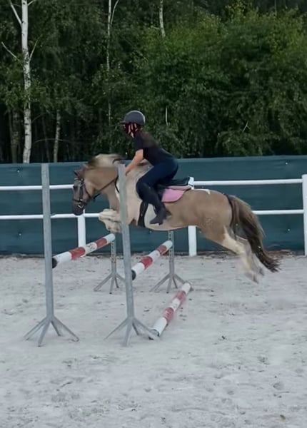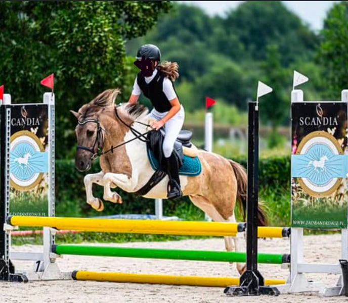 Je vends un poney exceptionnel entre de bonnes mains. Narcyz a 9 ans et mesure environ 130 cm au garrot. Je recherche pour lui un enfant expérimenté ou une personne petite et de stature fine, mais sûre d’elle et courageuse. Ce poney est très gentil et calme lors des soins quotidiens, comme le nettoyage, le pansage, le pansage, ou le nourrissage ; les enfants peuvent faire tout cela sans souci. Il conviendrait idéalement à une personne ayant au moins un niveau de Bronze, car il peut parfois s’emballer lors de la monte, mais avec une bonne connaissance et une bonne entente, il travaille très bien. En dressage, il maîtrise des éléments tels que la réponse à la jambe, le déplacement des épaules vers l’intérieur en trot, le passage au galop depuis le pas, ainsi que le contre-galop. En saut, il franchit seul des obstacles jusqu’à 1 mètre à la maison, a participé avec succès à des concours jusqu’à 80 cm, et a remporté de nombreux classements. Il est excellent aussi bien en temps normal qu’en compétition de vitesse, ne refuse jamais un saut et passe toujours de l’autre côté de l’obstacle. Il monte en terrain, entre dans l’eau, et ne craint pas la circulation routière. Il peut également être mené en longe par des enfants. Il a participé à des examens de compétences équestres. Dans un nouvel environnement, il se comporte comme chez lui, sans peur. Il monte sans problème dans une remorque et est très bien élevé en transport. Il n’a jamais été malade ni blessé. Dans la hiérarchie du troupeau, il se situe au milieu – il ne cherche pas à dominer, mais ne se laisse pas non plus marcher sur les pieds. Je le vends en raison de la croissance de jeunes cavalières, afin qu’il ne soit pas gaspillé et qu’il puisse continuer à évoluer et initier quelqu’un au monde des compétitions.