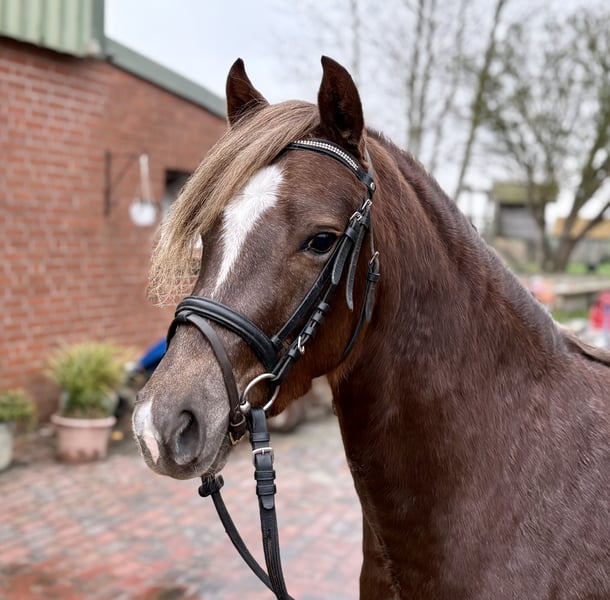For Sale: Welsh B Mare – Born in 2022 We are offering a beautiful Welsh B mare, born in 2022. This charming chestnut mare stands at 13.7 hh and is a versatile horse with great potential. She is well-suited for riding and impresses with her gentle temperament and willingness to learn. Armani has been professionally backed and started under saddle. She is currently being further trained in harness by a certified driving instructor. Armani is healthy, well-groomed, and exhibits an extremely friendly and open demeanor. Her excellent pedigree and pleasant character make her a promising partner for ambitious riders and drivers. Please feel free to contact me for more information or if you are interested. Viewings are possible by appointment.