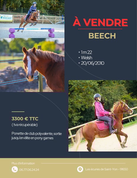 Very versatile pony competing at an elite level in pony games. She is also a good broodmare. Easy to handle on a daily basis, even with young children, and suitable for transport. Additional information and videos available upon request. Phone: 06 77 06 24 24