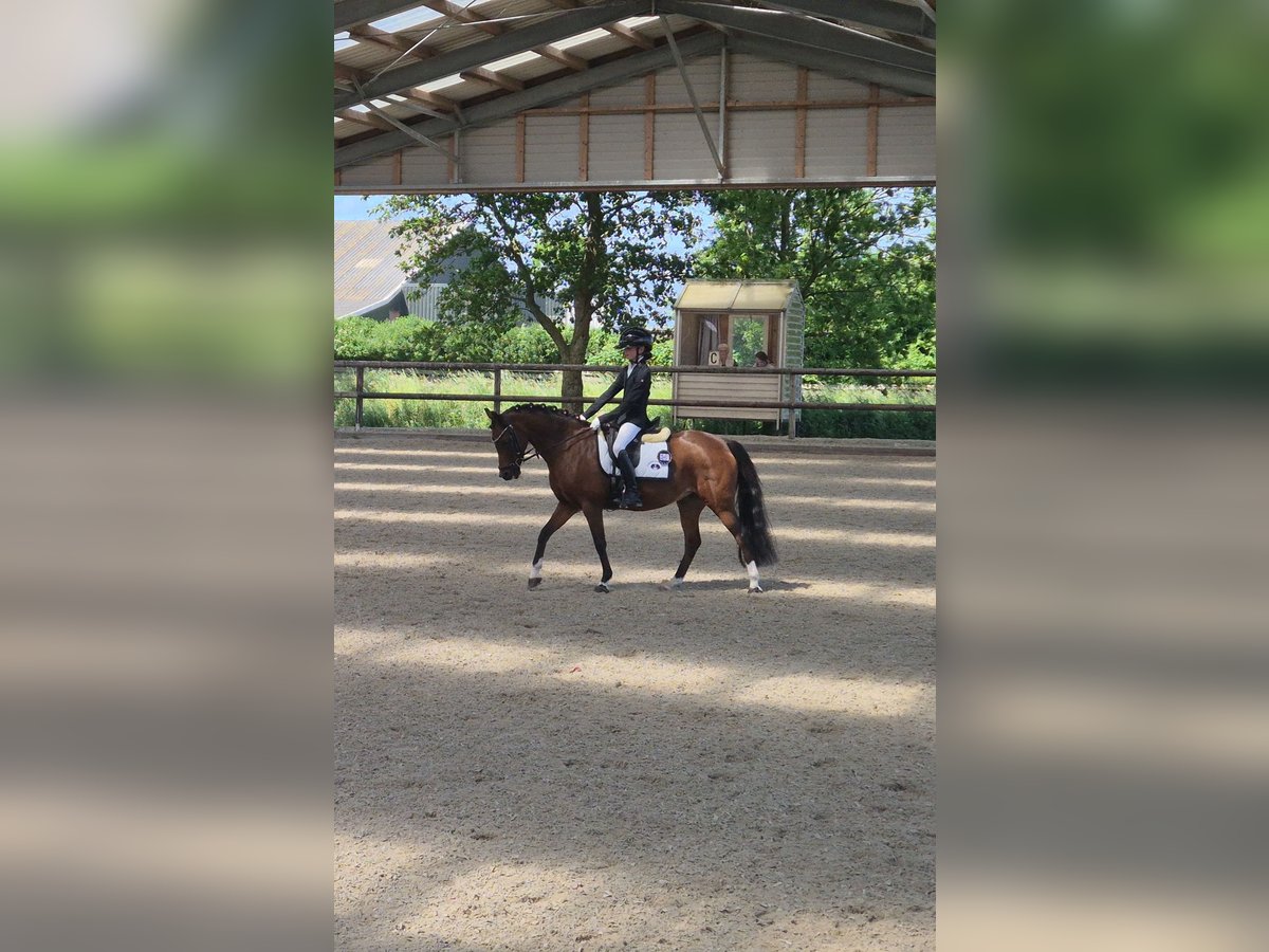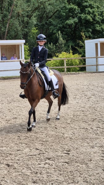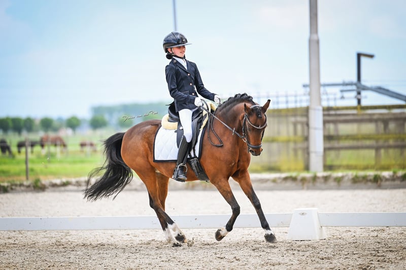 Super lieve welsh sportpony Merrie Haar naam is. Rosedale fairy consort (fay) Fay is 15jaar oud en heeft een Stokmaat van 126,9 cm dus valt nog in de B maat. Fay is een super lieve voorwaartse pony die niet snel onder de indruk is en heeft nog nooit een stap verkeerd gezet. Fay is uitgebracht is de dressuursport M1 en beheerst alle oefeningen, fay kan ook goed springen alleen is nooit uitgebracht Ook ervaring in de bixie. Ze is een lieve pony in omgang poetsen, wassen of gewoon lekker wandelen geen probleem ze kan ook prima buiten staan met anderen pony's. Ondanks dat fay een voorwaartse pony is kan je prima met haar op buitenrit en geniet ze ook heel erg van. Voor Fay is enige rijervaring wel belangrijk of de juiste begeleiding om dat het een echte voorwaartse sportpony is. Denk jij dat je de juiste ruiter bent voor fay neem gerust contact op en kom haar gerust uitproberen
