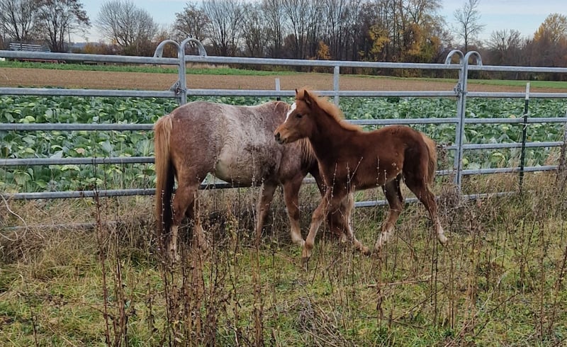 Ik ben op zoek naar een nieuw thuis voor mijn merrie, die in juli is geboren, na het spenen. Haar moeder is een absoluut betrouwbare merrie, zowel voor beginners als als kinderpony. Haar moeder is een staatsprijskandidaat en werd bij de inschrijving in mijn vereniging erkend met de woorden "terecht Verb. Pr." Haar vader komt van een Verb. Pr. merrie met uitstekende sportambities en zijn vader is een prijswinnaar hengst in het mennen en goedgekeurd. Beide zijden van de afstamming bevatten veel bekende en succesvolle voorouders, zoals elite, premie en veelzijdig gewaardeerde showresultaten. Ook in de sport hebben enkele voorouders al zeer succesvol gepresteerd, ook met kinderen. De exacte afstamming is op aanvraag beschikbaar. Ze krijgt volledige papieren bij het ZfdP. De kleine was nauwelijks op de wereld en had absoluut geen angst voor mensen. Sinds de kinderen haar mogen aaien, wordt ze alleen nog maar geknuffeld (zelfs als ze het zelf wil). Ze is nieuwsgierig en onbevreesd. Toch brengt ze, passend bij haar leeftijd, veel energie en levensvreugde mee. Ze groeit op in een kudde en leert zo tot aan het vertrek alle belangrijke sociale contacten. Ze houdt van mensen en heeft een geweldig karakter. Zoals het eruit ziet, zal ze later gedeeltelijk donker zijn en kan ze een lichte manen krijgen. Tot het spenen kan ze haar hoeven geven, is ze halster- en leidingsvaardig, kent ze allerlei dingen, inclusief de omgang met mensen, en ik maak graag al wat trailer-oefeningen voor de komende verhuizing. Kleine hoefverzorging kent ze ook al. Ze laat in principe alles met zich doen. Ze komt heel goed overeen met kinderen (altijd onder toezicht van volwassenen) en laat zich met veel plezier aaien, knuffelen en vertroetelen. Ze vraagt er zelfs om (maar niet opdringerig en ze begrijpt inmiddels ook een nee) in plaats van zich er ongemakkelijk bij te voelen. Ik kan me haar heel goed voorstellen als toekomstig kinderpony of sportpony. Als ze op haar vader lijkt, heeft ze springtalent. Ze zou ook geschikt zijn voor het mennen. Maar ook als fokmerrie vanwege haar geweldige afstamming en haar mooie bouw. De prijs is bespreekbaar. Een goed thuis tot het spenen is voor mij belangrijker. Maar ze wordt niet weggegeven en blijft, ondanks de kwaliteit, nog binnen het redelijke. Bij interesse en vragen graag hier schrijven, aangezien ik telefonisch bijna niet bereikbaar ben.