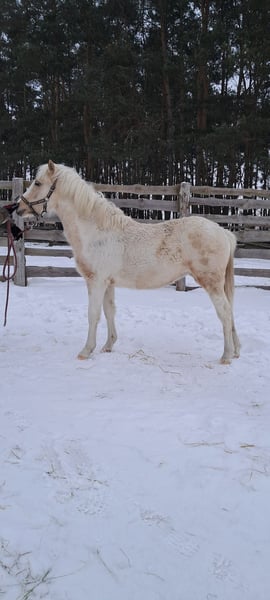Tout comme sa robe d'origine palomino pie (confirmée par les tests génétiques homozygote au Locus E - génotype T/T(e/e), hétérozygote au Locus C génotype A/G( Cr/N)). Elle a un caractère fort et une sensibilité au contact de l'humain. Dès sa naissance, elle a été élevée en liberté, ce qui garantit à l'avenir une bonne musculature, idéale pour le sport. La jument est vaccinée, vermifugée selon le calendrier, sous les soins constants du maréchal-ferrant. Passeport AES. Taille estimée 130-135 cm. Née le 25.03.2025 Par Ares welsh pony ( Wolling’s Dante welsh – Apasjonata Dumka welsh/ Kienbergs Doro welsh) Norwegian Wood ( Nando Super - Bisia) Sa mère a fait des preuves dans le sport en saut d'obstacles, avec une taille de 130 cm, des concours documentés jusqu'à 100 cm. Je fournis le document TRACE nécessaire pour le transport international. No tel. /WhatsApp + 33 660836193, FR,EN, PL No tel./WhatsApp + 48 883992001, FR,EN,PL