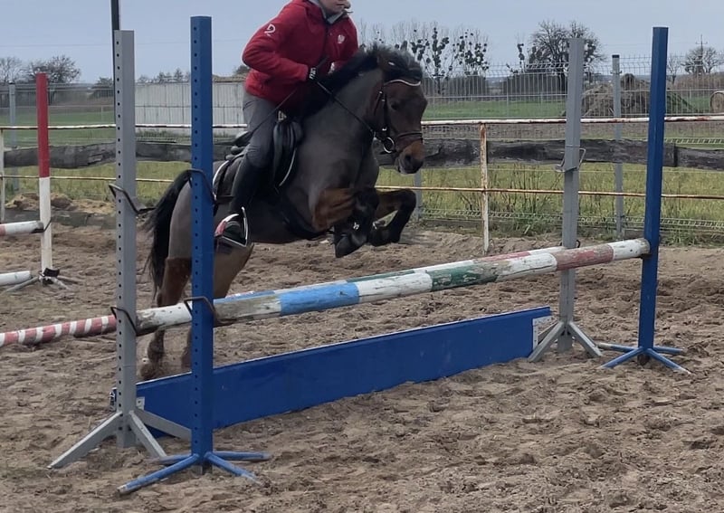 Sprzedam kuca gr A1 z pełnym pochodzeniem. Klacz ma 4 lata i ok 125 cm wzrostu( jeszcze trochę urośnie ). Grzeczna w obsłudze, przy kowalu, weterynarzu i goleniu. Zaszczepiona i odrobaczona. Zajeżdżona w trzech podstawowych chodach, oraz naskakana do 70 cm z możliwościami na więcej, w skoku elastyczna. Nie straszne jej straszki, skacze deski, podmurówki, rowy. Przygotowana do pierwszych startów, potrafi lotne zmiany nogi. Codziennie padokowana z drugim koniem, potrafi jeździć przyczepą. Jeździły na niej dzieci, nada się do rekreacji ale zadowoli również osoby chcące rozwijać się w sporcie. Zdrowa, nie kontuzjowana. Na ostatnim zdjęciu dziadek. Możliwość transportu 16 000 zł Możliwość negocjacji po obejrzeniu kucyka. Więcej informacji pod nr tel 57*****04 63-130 Książ Wielkopolski