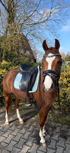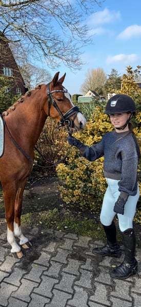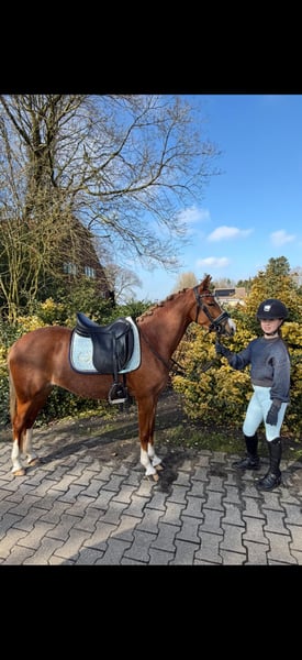 For sale: 4-year-old C Pony Beautiful and gentle 4-year-old C pony registered with the Welsh Studbook. Sire: Paddock Lorenzo. She has a height at the withers of 1.34 meters and is a chestnut pony with a lovely light mane. She has been well ridden, is easy to handle, and has a gentle, cooperative temperament. A sweet pony with great potential for the future. A true future prospect with quality, presence, and a friendly character. 📍 More information, photos, or videos available upon request. 📩 Serious inquiries? Feel free to contact us.
