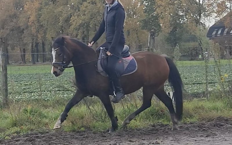 Are you looking for a young talent and a lifelong companion? Our stunning 4-year-old Welsh B mare is ready to embark on new adventures with you! Thanks to her willing nature and her smooth, expressive movements, she is very suitable for sport. She moves lightly and clearly shows that she is prepared to be further trained. Currently, we ride her weekly; after the holidays (when she has been standing still for several weeks), she still easily mounts and rides away! Ideal for a rider or mare owner seeking a young pony to grow with and develop into a fantastic sport or leisure pony. Interested? Feel free to contact us for more information or to meet this beautiful mare.