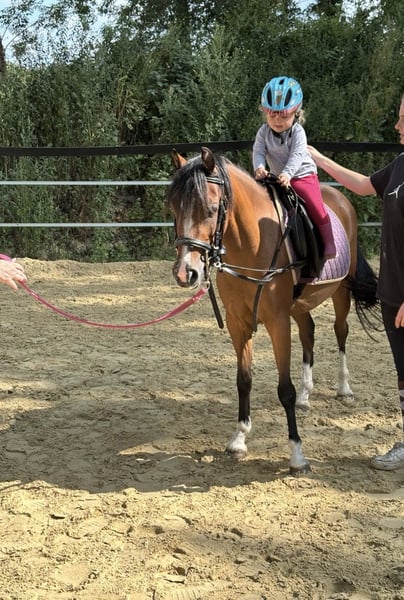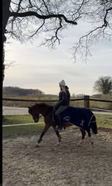 Bambi is 5 years old, approximately 1.30 m tall, and is based on a farm. She is familiar with tractors, cows, and the general hustle and bustle of farm life without any issues. She has been ridden in all three basic gaits and has also been driven in a carriage by her previous owners (not used by me). In handling, Bambi is a sweet and uncomplicated pony. Two 12-year-old girls ride her regularly here. She is very gentle and cautious when leading with small children. However, on some days, her typical pony head comes out, and she enjoys having someone who can be friendly but assertive. Therefore, she is ideal for children with some riding experience, but not complete beginners. Bambi has very beautiful, elastic gaits, and I am confident that with continued, consistent training, she can become an excellent competition pony. She definitely has the potential. Additionally, she is easygoing in everyday life – she has no problem standing alone in the meadow or stable for a few hours. She is healthy, regularly wormed, and full of potential. Feel free to contact me by phone at 01758616588.
