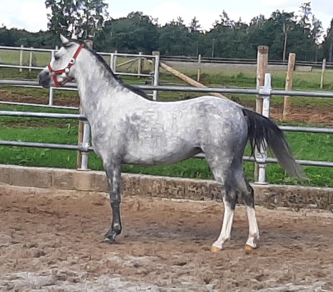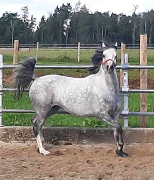 Juliette ist eine sehr menschenbezogen Stute die in der Gruppe aufgewachsen ist und altersgerecht jetzt angeritten werden kann. Sie kennt haengerfahren, Gebiss, Hufschiwd ect. Mit ihrer sehr guten Abstammung eignet sie sich auch sehr gut fuer Zucht und Schau. Nur anzugeben da Geschwister vorhanden.