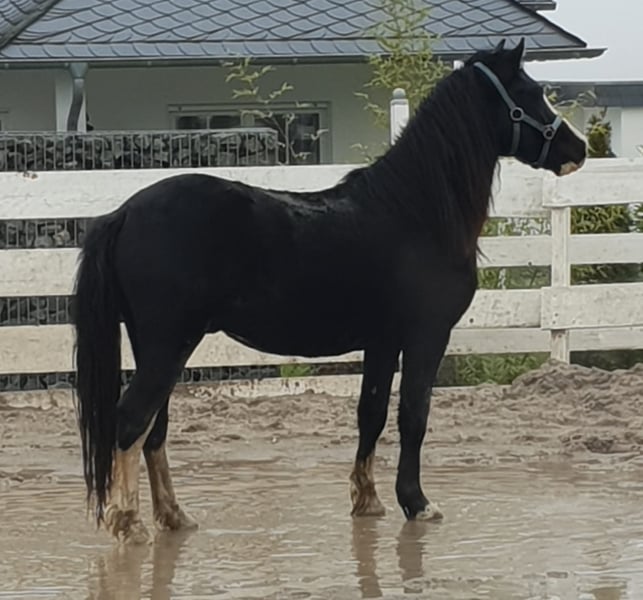 Ein toller im Welsh C-typ stehender Wallach. Schwarz mit ausdruckstarkem Gesicht und überdurchschnittlichen Bewegungen. Ein junger Mann mit sehr grossem Potenzial für die Freizeit oder den Sport. Er wird im Welsh C- Mass von 137 cm voraussichtlich bleiben. Er ist im Herdenverband aufgewachsen, geimpft und entwurmt und ist ein echter Hingucker. Er ist angeritten und wird von 12 jährigem Mädchen geritten. Sehr lieb und lernwillig. Anschauen lohnt sich.