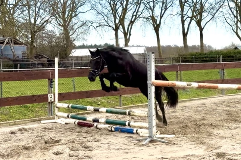 Looking for a new little pony! Incredibly brave and sweet three-year-old C-pony Welsh cob. He measures 1.30 m and is expected to mature around 1.34 m, considering his age and the fact that he is still a bit overgrown. His pedigree includes Willow Constantine x New Challenge’s Braveheart x Ridgehill Rhydian. He has excellent gaits! In the photos and video, we let him jump for the very first time without a rider. He performed exceptionally well, enjoyed it, and showed a very good hindquarters. Despite his young age, he is really super well-behaved! He has already been led in a halter with a small child on his back a few times, but is still untrained in riding. He is familiar with a saddle. He is very easy to handle, stands nicely still during grooming, knows how to put on and take off a halter, and is comfortable with a blanket. He also walks calmly on a lead rope. He comes straight to you in the field and is very social with other horses. He is also well-behaved in the trailer! He has no (stable) defects! A great opportunity for someone looking for a future sport pony or children's pony! Also interesting for carriage driving in combined driving! Fixed price € 2,250