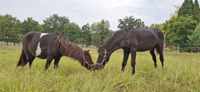 My name is Mogli, I was born on May 7th, 2025, and I am looking for a new home. I am a very curious and brave little guy. Loading into the trailer, tying, grooming, and being handled or led from anywhere are no problem for me. I'm really a cool little character. My mother is a compact pony mare approximately 1.25 meters tall, and my father is about 10 centimeters taller (see last picture). Since I already have such long legs, everyone suspects I will easily reach my dad’s size. Currently, I live in an open stable with two other boys, and everything works perfectly. If you'd like to know more about me, feel free to get in touch. My best friend Odin was born on May 19th, 2024, and is also looking for a new home. Odin is absolutely well-behaved and sweet for his age. He is familiar with children and everything that comes with it. He shows no stallion behaviors and walks nicely through the terrain. His parents are 90 cm and 110 cm tall. He will reach approximately the same size. I think he could become a great children's pony or a carriage pony. Please contact me for more information.