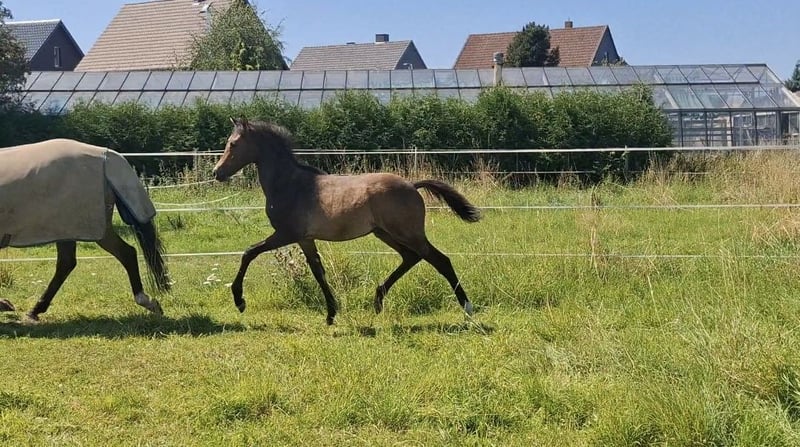 Verkaufe Welsh-C Hengst – Geburtsjahr 2025 Zum Verkauf steht ein wunderschöner brauner Welsh-C Hengst, geboren im April 2025. Stammt ab vom Hengst Halifax, aus einer Mutter von Wengelo's Ricardo, aus der bereits tolle Kinderponys hervorgehen, auch erfolgreich mit Siegen und Platzierungen von den kleinen Wettbewerben bis zur A Dressur und A Springen. Dieses macht ihm bestimmt zu einem vielversprechenden Nachwuchstalent für den Turniersport oder auch ambitionierten Freizeitreiter. Zur Zeit hat er ein Stockmaß geschätzt 140 cm, sehr kompakt, wird bestimmt Endmaß und wird sicher gut abdecken. Eine Vollschwester aus dem Jahrgang 2023 kann vor Ort besichtigt werden. Trotz seinem freundlichen Wesen, ist er dennoch etwas schüchtern und zurückhaltend. Er ist regelmäßig entwurmt und beim Schmied vorgestellt. Bei Interesse oder für weitere Informationen stehe ich gerne zur Verfügung. Besichtigungen sind jederzeit möglich