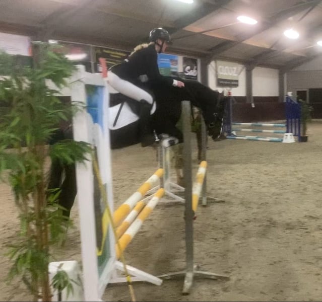 Perfect is a very sweet pony to handle and definitely suitable for small children. She doesn't bat an eye and is super easy to ride on other terrain. She's not skittish or shivering at all. She's a forward-moving pony, but she won't bolt, just keeps a good pace and is easy to ride and keep close. She loves jumping the most; she jumps a 60/70cm course and flies over everything with ease. She turns quickly and easily covers distances. Ideal for a young rider who wants to get into show jumping. She's also been on a bixie ride once, where she does her round and her 20cm course very calmly and well-behaved with a 9-year-old girl. On trail rides, she's also well-behaved and loves it. She'll go on the trailer alone and go to the woods with her. In the pasture, she's never been difficult with other ponies. Perfect is healthy and doesn't have any quirks. For more information or videos, please send a message. 06 83064251