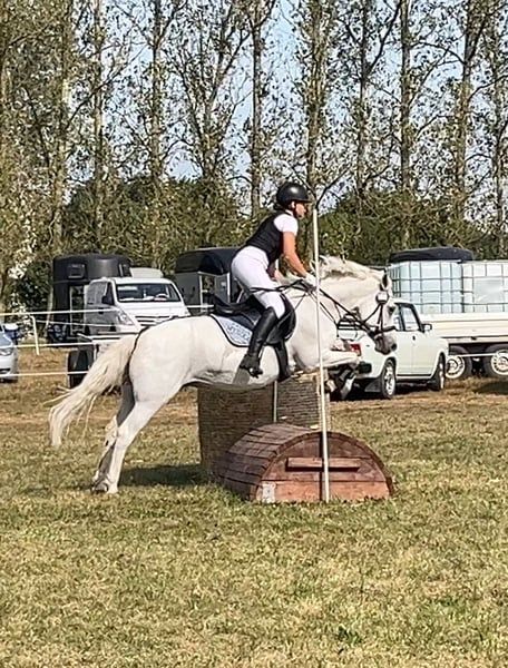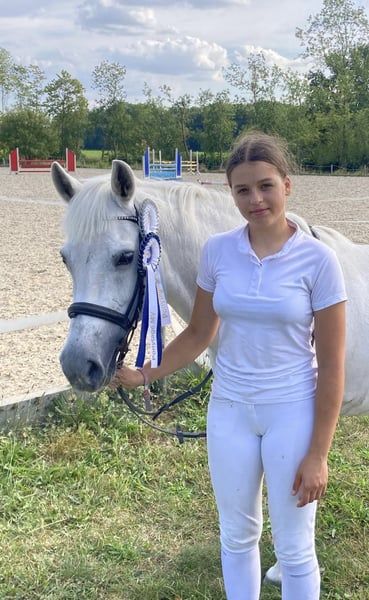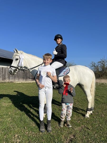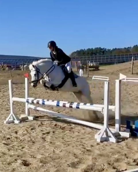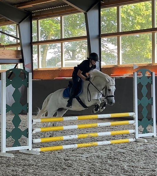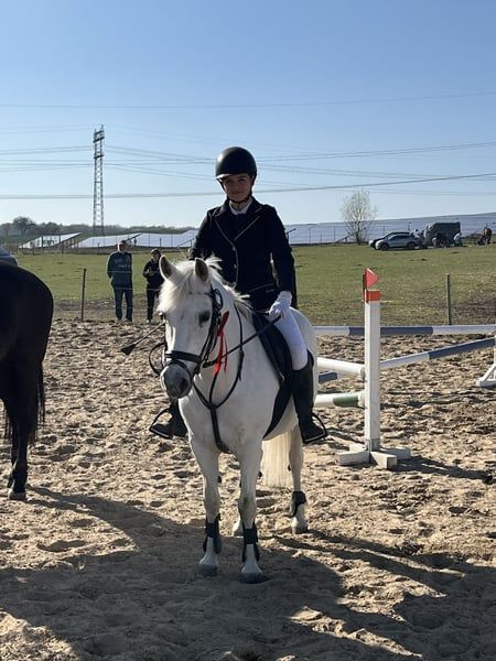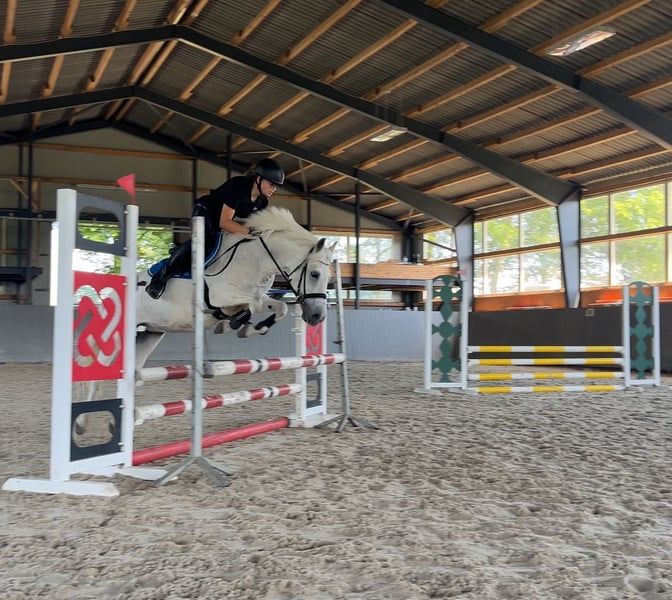 Pony muy estable con un ritmo excelente en galoppo, técnica de salto muy buena y bien entrenado en doma. En casa, saltamos hasta 85 cm. Actualmente con una nueva amazona (14 años, sin experiencia en concursos), en competición hasta 80 cm, ¡y en las primeras dos semanas de entrenamiento juntos ya ha obtenido buenos resultados! Por lo tanto, es un pony ideal para aprender a longear o para niños que ya puedan montar solos y sepan qué hacer. Muy bueno en campo. También ha sido colocado con niños pequeños de 5 años en paseos en riendas. Se pueden enviar muchos vídeos por WhatsApp.