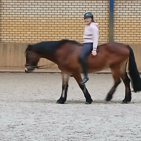 Ponny zu verkaufen, 12 Jahre alt. Ein Welsh Cob, 1,47 m. Ein Wallach. Nicht geeignet für unerfahrene junge Reiterinnen oder Reiter. Er wird noch ausprobiert. Aber wenn man etwas Erfahrung hat, ist alles in Ordnung. Im letzten Jahr wurde er nicht viel geritten. Aber er ist einsatzbereit zum Aufsteigen und Reiten, auch im Gelände. Er lässt sich leicht auf den Trailer laden. Er mag auch kleine Sprünge. Brav beim Schmied. In der Vergangenheit wurde er beschlagen, das ist aber schon lange her. Früher wurde er auch gezogen.