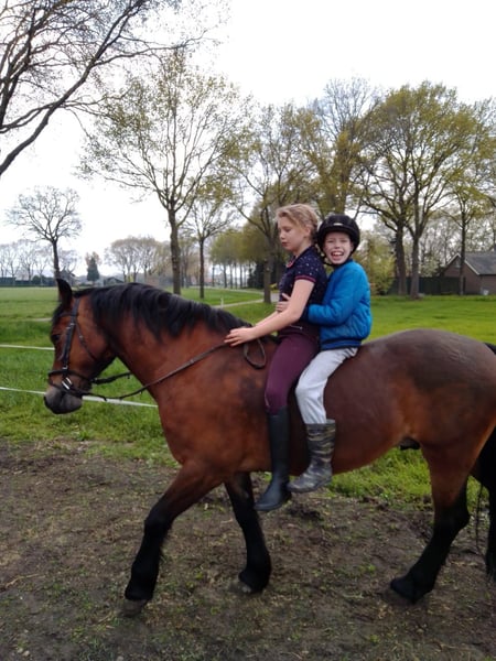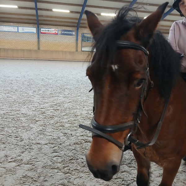 d pony te koop 12 jaar. Een welsh cob. 1.47m .een ruin. NIet geschikt voor jonge onervaren ruiter/amazone. Die gaat hij uitproberen. Maar ben je wat ervaren is er niets aan de hand. Laatste jaar niet veel gereden. Maar het is opstappen en rijden, ook buiten. Hij is makkelijk te laden op de trailer. Houd ook van een sprongetje. Braaf bij de hoefsmid. In het verleden beslagen, maar nu al lang niet meer. In het verleden ook voor de kar gereden.