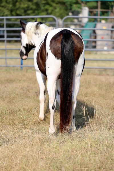 🎁 𝐈𝐍 𝐓𝐈𝐌𝐄 𝐅𝐎𝐑 𝑪𝒉𝒓𝒊𝒔𝒕𝒎𝒂𝒔 🎁 Happening now thru TUESDAY | DECEMBER 9th - Available EXCLUSIVELY on Ponybid's website! For more details and to register visit: www.Ponybid.com CONSIGNOR CONTACT: MM Ranch 469-595-6289 LOCATION: Forney, TX BREED: Welsh Pony REGISTERED: No REGISTERED NAME: Domino COLOR: Paint HEIGHT: 13.2 AGE: 16 GENDER: Gelding Where do I even start with a great BABYSITTING UNICORN gelding like this one! Domino is the perfect little fun size horse standing 13.2 hands tall. He has been part of our family for a long time now and has babysat so many kids, we are saddened by this decision but it is time to part with him. Domino is 16 year old very cute black and white gelding. He has manners and rides around like a big horse, he’s as broke as broke gets and I would trust him with any kid, small adult, grandma/grandpa or any age beginner. Doesn’t matter…You can ride him. I trust anyone can ride him anywhere, including BRIDLE-LESS! Absolutely NO kick or buck in him! Absolutely no bad habits! Absolutely no maintenance or bs. He is simple, easy, and fun to ride. 🚙 He has been more miles and seen more country than most people! When I say he’s been there and done that I mean it. He is one handed broke, neck reins, and has a good stop! He has always been willing to go or do anything they have asked. He will ease thru the creeks/ponds, thickets, traffic safe, train safe, machinery safe, loud noises don’t bother him. He’s been to ropings, barrel races, jumping jumps, rodeos, spent many days working cows, dragging calves, hog hunting, swimming ponds, tied out camping, and been thru every aspect of the woods from thickets to boggy creeks, and trail riding down the roads. Trains honking and going by don’t bother him, he will ride right next to it. He even rides ENGLISH! We carry multiple buckets of feed strapped over his back to help carry to feed. Domino has also been used to carry the American flag for the National Anthem at rodeos. He is BOMBPROOF, absolutely no spook at all and will go anywhere he is pointed, he never refuses or says no. He is a once in a lifetime time little horse. ☀️ He is one of those that is as honest as the day is long. He’s easy to catch and hauls like a champ. He has the biggest heart and try of anything we have on the place. The kids themselves, saddle, bridle, and ride him everywhere with ZERO help from an adult. I trust this little horse enough for little kids to run up to him from the front or back and he will stand like a rock. 🎸 You can go rope on him, pop bull whips, run barrels, run poles, goats tie, TRICK RIDE, breakaway, and trail ride! Domino will walk, trot, lope, or go as fast as you want in all the events! He is the coolest little guy around and everywhere we go he gets ALL the attention. He leads, loads, ties, bathes, clips, and stands for the farrier. I really can’t say enough good things about him. Please don’t hesitate to call us about Domino, I’d love to talk to you about him.⚡️He sells 100% safe and sound in every way. Up to date on vaccines and coggins. 🌎 We can help with making shipping arrangements to anywhere!! 🎁🎄 He would be an ideal Christmas gift!!! We can hold him till Christmas to make for the perfect surprise!!!