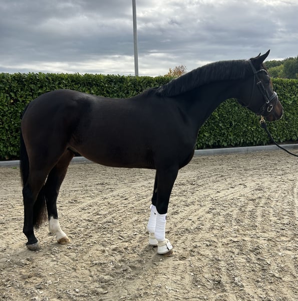Who is ready to work with this adorable young D pony? 🐴 Dempsy is a very charming 3-year-old D pony (born on April 28, 2022) with an expected height of approximately 1.47 m. Lineage: Nia Domo’s Bolero x Orchard D’Avranchas He was approved radiographically last year. Dempsy is a affectionate and eager-to-learn pony. He has just been backed and is still a bit green, but thanks to his excellent temperament, he picks up everything very quickly. In the stable, he is a real cuddle buddy. In the pasture, he calmly walks past a busy main road with a lot of (truck) traffic, and he shows no signs of concern. Dempsy has been with me for about a year now. After starting under saddle, he was given time to develop further at a relaxed pace. Recently, we have cautiously resumed training, and he is performing exceptionally well. In short: a sweet, sensible, and willing young pony, ready for someone to further train and develop! Price on request. Video available upon request. +31 6 83 81 01 10