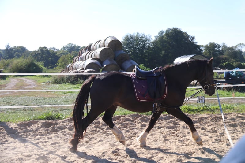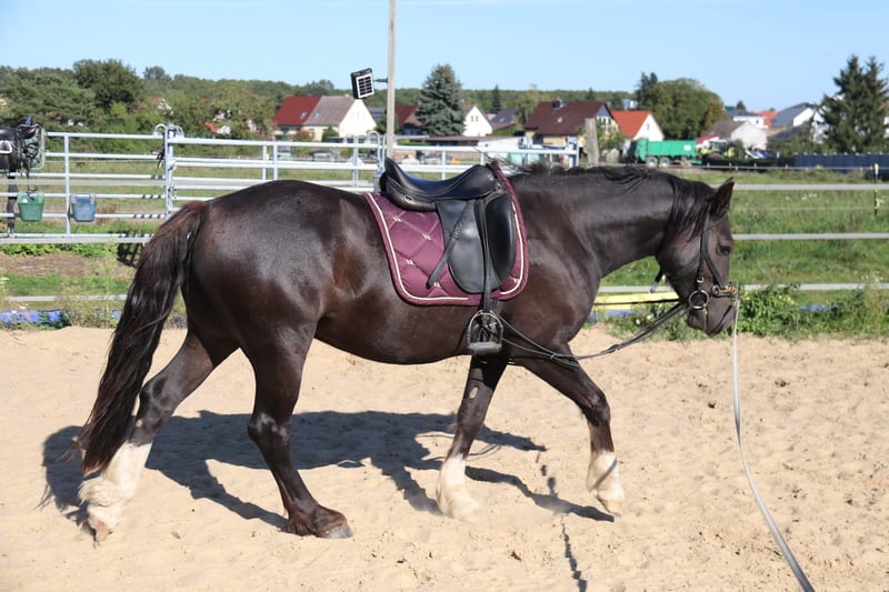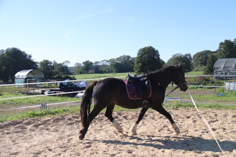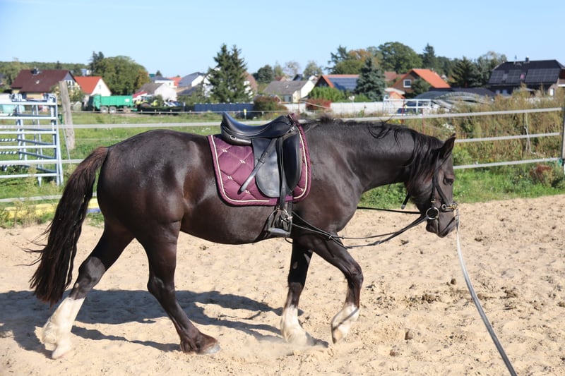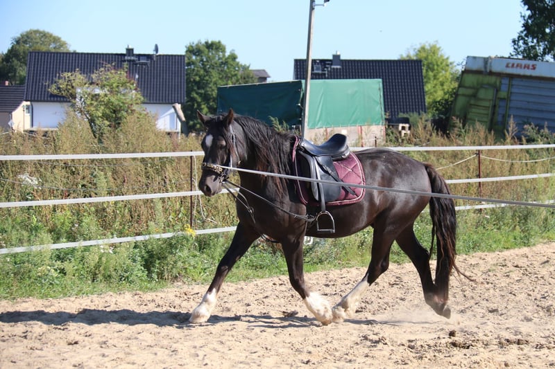 Zargon ist ein dreijähriger Welsh Cob Wallach von Stubbenhof Zorro aus einer bewegungsstarken sportlichen Welsh Cob Stute Solloway Lady Lara. Prämiert als Fohlen hat sich dieser schöne Rappe gut entwickelt und besticht durch seine überragenden drei Grundgangangarten. Er ist menschenbezogen und leistungsbereit. Er wurde im Sommer anlongiert und an Reitergewicht gewöhnt. Er zeigt sich auch hier unkompliziert. Leider hat er sich in der Aufzucht auf der Hengstkoppel am Hinterbein verletzt. Die Schwellung hat ihn niemals behindert und hat keinen Einfluß auf seine Bewegungen. Das Bein wurde ohne Sehnenbefund tierärztlich behandelt. Aufgrund der immer noch vorhandenen Umfangvermehrung wird Zargon unter Wert abgegeben. Wenn Sie einen Freund fürs Leben suchen, ist vielleicht Zargon Ihre Chance. Bei Fragen oder Interesse stehe ich Ihnen gerne zur Verfügung.