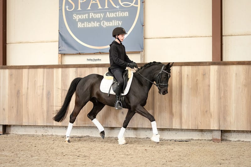 This pony is available in the SPARQ - Sport Pony Auction . Visit www.sparq.auction to see all of them! From an approved stallion and proven FEI ponies to top hunters and outstanding young talents from international damlines.. this collection has it all! Beautifull Black pony with lovely model and gaits! Ronaldo is an honest and willing pony who enjoys working for his rider and is eager to learn. He has three good gaits, is pleasant to ride in the dressage arena and has a soft and comfortable contact. He has recently competed at L2 level, where he behaved well at shows and during transport. Ronaldo is still a young pony, honest but alert. Therefore he more suitable for a rider with a little bit of experience. The lower part of his manes has rubbed slightly due to wearing a rug with neck. The pony has no eczema or sweet-itch. He will make a very nice partner for a confident rider who wants to continue developing him in the sport! Interested in placing a bid on this pony? Simply register on the auction platform, review the auction terms and conditions, and place your bid on the pony of your choice. Please note: if a bid is placed within the last 5 minutes, the timer will automatically extend by 5 minutes. The highest valid bidder wins! For this pony: For sales outside the EU; 0% VAT will be applied (provided the Buyer supplies valid export documentation within 60 days of the invoice date). For sales within the EU; this pony is sold under the VAT margin scheme. For more info and trials, feel free to contact Robin Versteijnen 0031650524662 (24/7)