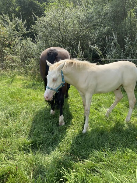 Schweren Herzens haben wir uns entschieden unseren Welsh Cob Legendary Whitegold, oder wie wir ihn nennen: Rocky, abzugeben. Rocky ist grade 6 Jahre alt geworden und ca. 145 cm groß. Wir haben ihn damals nach dem Absetzen vom Züchter gekauft und er ist seit dem bei uns aufgewachsen. Er durfte zunächst einfach Pferd sein und in Ruhe den Stallalltag kennenlernen. Züge, Traktoren, Hunde und Autos sind deshalb absolut kein Problem für ihn. Wir legen sehr großen Wert darauf, den Pferden genügend Zeit zum Entwickeln zu geben, weshalb wir vor ca. 3 Jahren langsam angefangen haben mit Rocky zu arbeiten. Vorher wurde aber bereits regelmäßig das Fohlen Abc geübt, weshalb er natürlich auch putzen, anbinden, Schmied usw. kennt. Er kennt Grundsätze der Bodenarbeit und des Horsemanship und auch longieren ist für ihn kein Problem. Da uns aber leider zeitlich die Kapazitäten fehlen, ausgiebig mit ihm zu arbeiten, ist Rocky noch nicht angeritten, dies ist auch der Grund warum wir nach einem neuen Zuhause für ihn suchen. In der Arbeit mit Rocky zeigt sich, dass er sehr schnell lernt und ein unfassbar feinfühliges Pferd ist. Wenn Rocky einmal etwas gelernt hat vergisst er es nicht mehr und kann es auch nach einer längeren Pause sofort wieder abrufen. Dabei will er immer gefallen und reagiert aber auch sensibel auf zu viel Druck. Wenn Rocky mal zu schnell zu viel Druck bekommen hat oder ungerecht behandelt wurde, merkt er sich auch das. Er zeigt drei wunderbare Grundgangarten und sehr viel Potential, er möchte gerne arbeiten und lernen und das wollen wir ihm ermöglichen. Rocky ist in diesem Sinne ein absoluter Rohdiamant, unverbraucht mit Potential in alle Richtungen. Wir wünschen uns für Rocky deshalb eine erfahrene und ambitionierte Person, die sich ihr eigenes Traumpferd selbst ausbilden möchte und darin einen Partner und kein reines Sportgerät finden will. Wir könnten ihn uns in zahlreichen Disziplinen, als Freizeitpartner, im klassischen Reitsport aber auch im Western gut vorstellen, ihm stehen alle Türen offen :) Zusätzlich kann Rocky auch mit einer wunderbaren Abstammung begeistern : Taraco Fiasco x Atinas Dream Girl (siehe Bild). Seine Farbe ist wirklich einzigartig und ein wahrer Hingucker. Rocky steht bei uns in einem Offenstall mit geräumiger Box und viel Auslauf. Im Frühling kommen unsere Pferde auf eine Sommerkoppel und stehen dann rund um die Uhr auf Gras, deshalb ist Rocky auch dies gewöhnt. Wir würden uns für ihn deshalb auch ein Zuhause mit viel Auslauf und Freiraum wünschen. Gesundheitlich war Rocky bei uns nie auffällig. Er ist nur an einen Bestplatz abzugeben, mit Menschen die ihn lieben und fördern so wie er es verdient hat. Deshalb geht für uns Platz vor Preis! Telefon: 0170 4717377 Bei weiteren Fragen oder Interesse gerne melden, wir freuen uns auf euch!