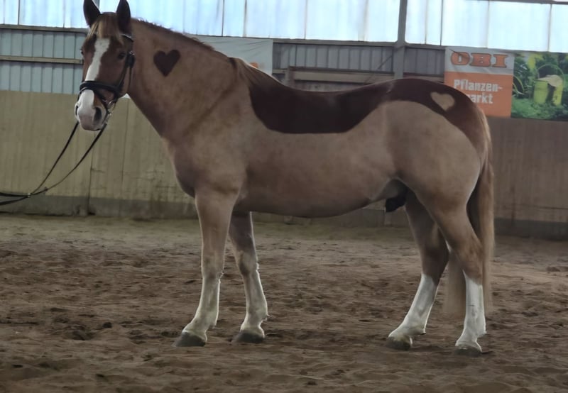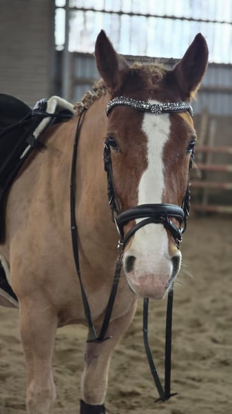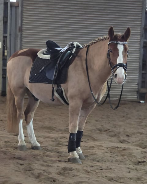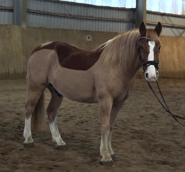 Zum Verkauf steht Ferdinand vom Gartetal (Spitzname: Finley) ein wunderschöner Welsh-D Wallach, geboren am 14.05.2018. Dieser charmante Fuchs begeistert durch sein Wesen und seine angenehme Art. Jedoch benötigt er am Anfang auch klare Grenzen. Er steht nicht immer still und ist sehr auf die Leckereien, welche in der Tasche versteckt sein könnten, fokussiert. Mit einem ungefährem Stockmaß von 150 cm ist er ideal für den Freizeitbereich geeignet und überzeugt durch seine Vielseitigkeit. Er ist ein Verlasspferd und absolut unerschrocken. Finley ist Barhufer, gesund, gepflegt und kennt die täglichen Abläufe im Umgang. Seine angenehme Größe macht ihn zum idealen Begleiter. Er ist jedoch nichts für reine Anfänger, da er recht lauffreudig ist. Mit Unterstützung einer guten Reitlehrer/-in bekommt man das aber gut in den Griff. Man muss nur wissen wie es funktioniert. Er kennt jegliche Art der Haltung und ist Herdenverträglich (mit Stuten und Wallachen) dort aber eher Rang hoch. Finley ist kein Notverkauf und wird nur abgegeben wenn es zu 100% passt. Bei Fragen oder Interesse können Sie mich gerne anschreiben.