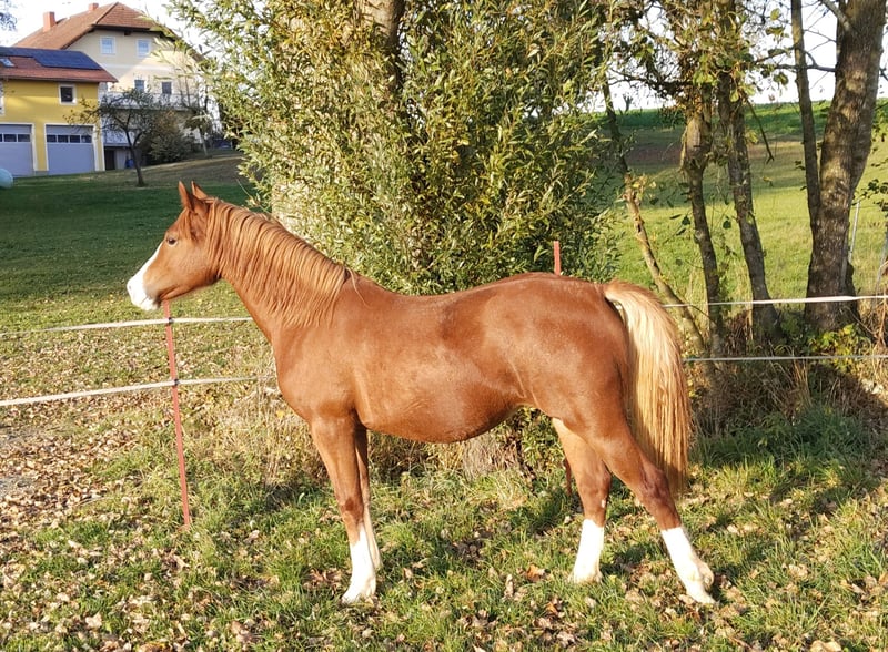 Sehr liebe 2 jährige Welsh Cob Stute abzugeben. Wir suchen für Vinni ein tolles neues Zuhause in dem sie geschätzt, geliebt und gefördert wird. Vinni ist eine sehr aufgeschlossene junge Stute mit viel Pony- Charm. Sie ist den Menschen von Anfang an sehr zugetan, im gemischten Herdenverband aufgewachsen und an das bewegte Landleben gewöhnt. Im täglichen Umgang und bei Allfälligem (Hufschmied, Tierarzt,...) sind keine Schwierigkeiten erkennbar. Vinni ist sportlich elegant im Typ und wird vermutlich im Ponymaß bleiben. Daher sehen wir sie im Moment noch als Jugend Reitpferd oder für zierliche Erwachsene. Ihre Mutter hat lange für ihre körperliche Entwicklung gebraucht. So nehme ich an, dass auch Vinni noch viel kräftiger werden wird. Grundsätzlich ist sie bestimmt für alle Sparten des Pferdesports denkbar. Bei Interesse melden sie sich gerne, dann kann ich auf weitere Fragen gerne antworten.
